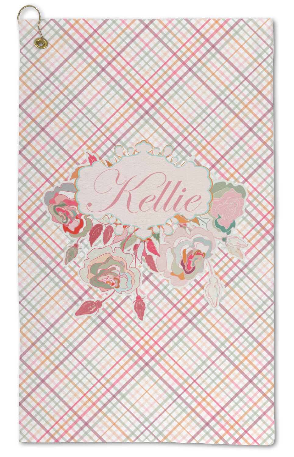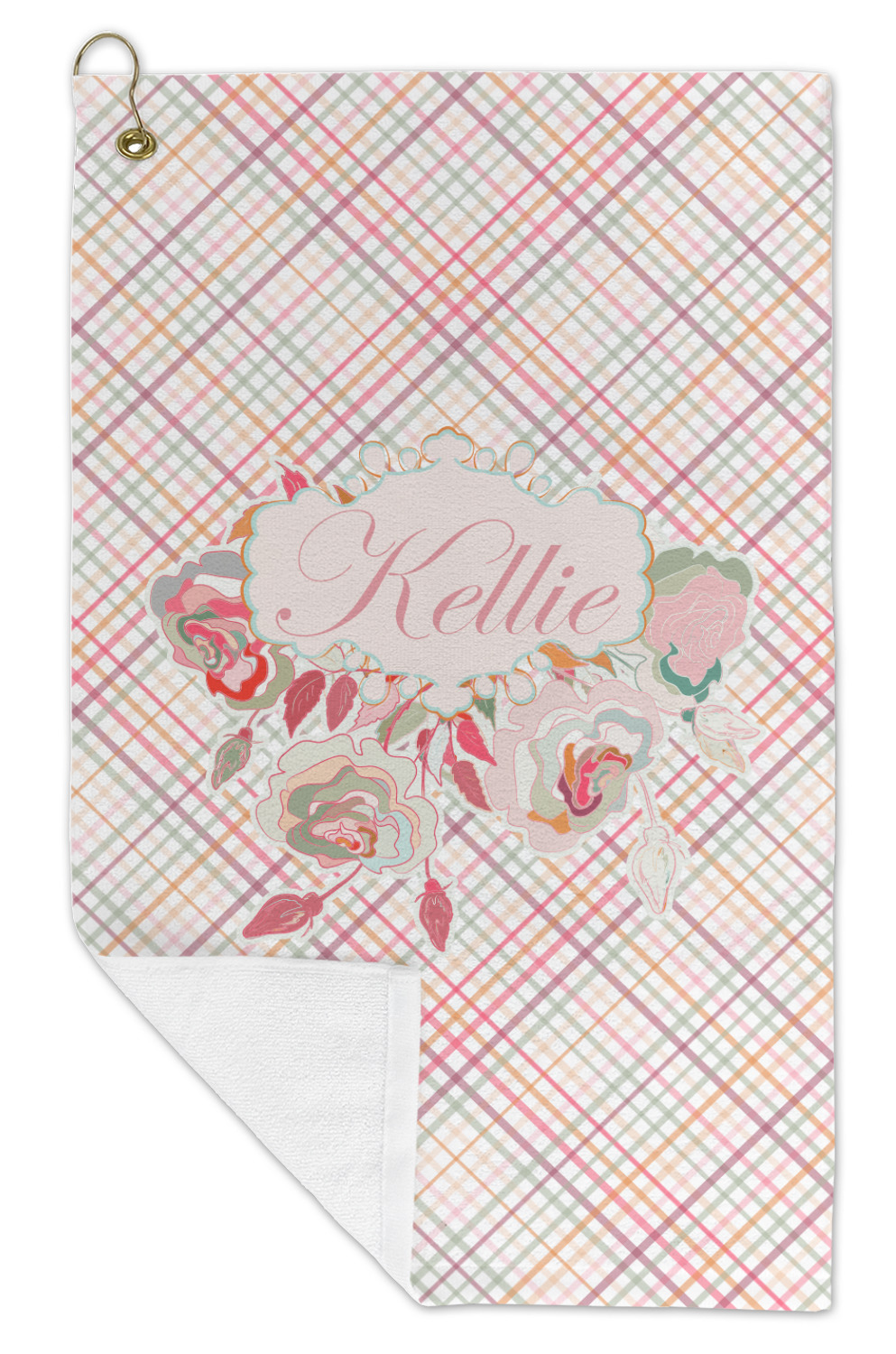 To make it really feminine, we chose a matching floral label that coordinates perfectly with the modern plaid. We chose to use a name personalization in our crown jewels font. We think this is a beautiful elegant design.
