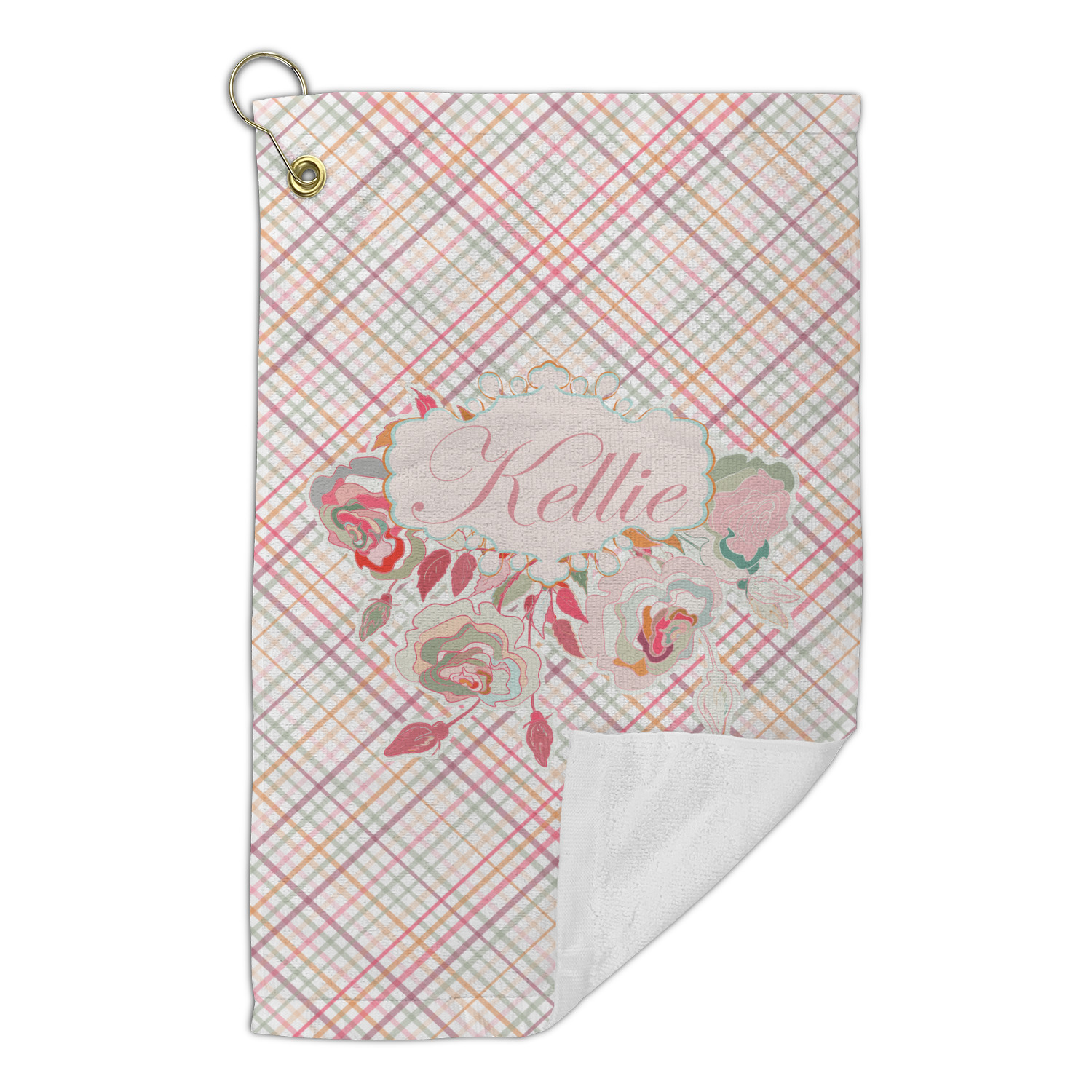 To make it really feminine, we chose a matching floral label that coordinates perfectly with the modern plaid. We chose to use a name personalization in our crown jewels font. We think this is a beautiful elegant design.