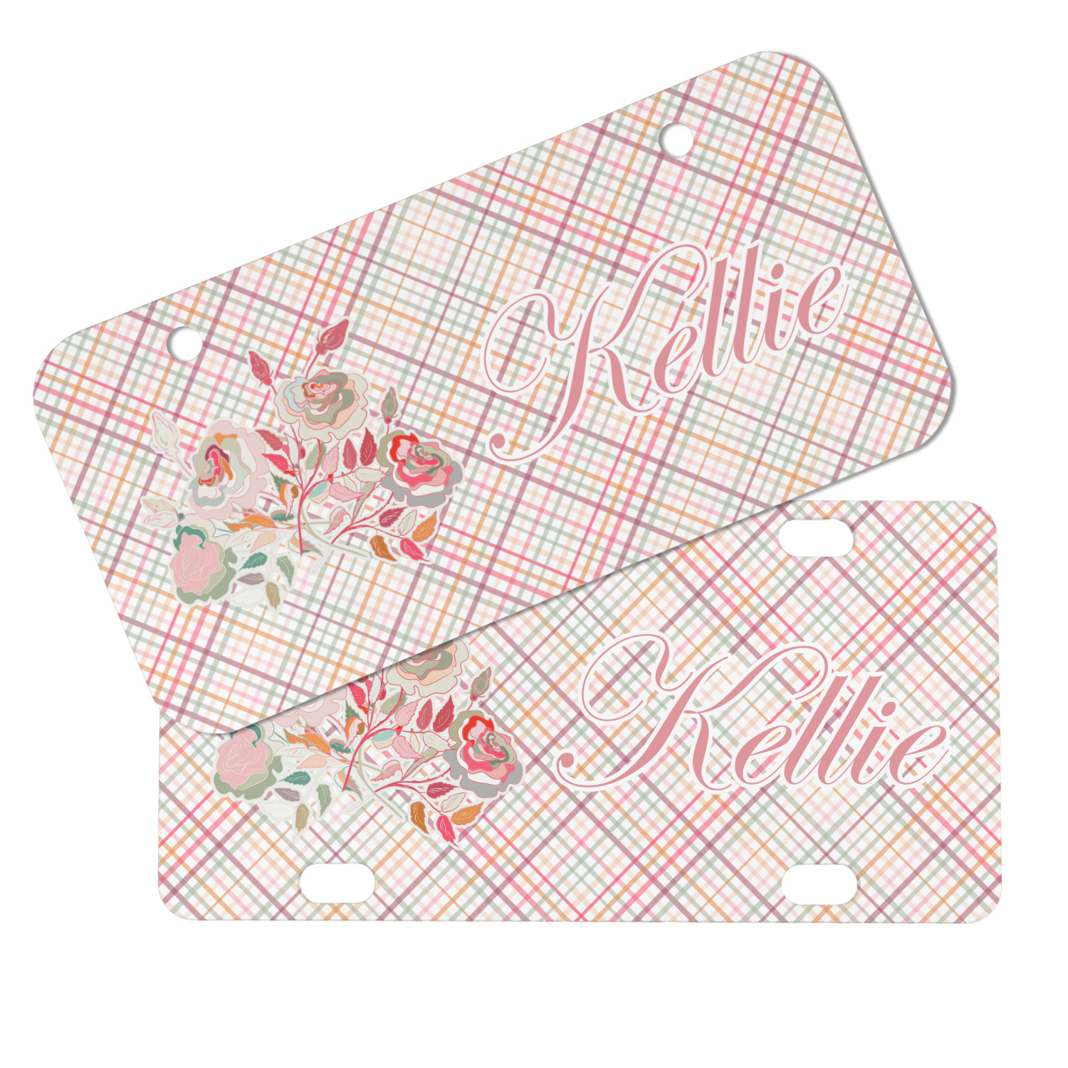 To make it really feminine, we chose a matching floral label that coordinates perfectly with the modern plaid. We chose to use a name personalization in our crown jewels font. We think this is a beautiful elegant design.