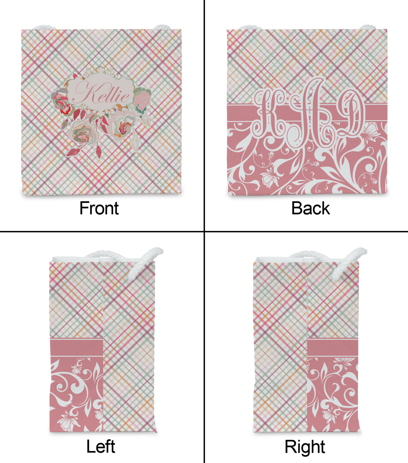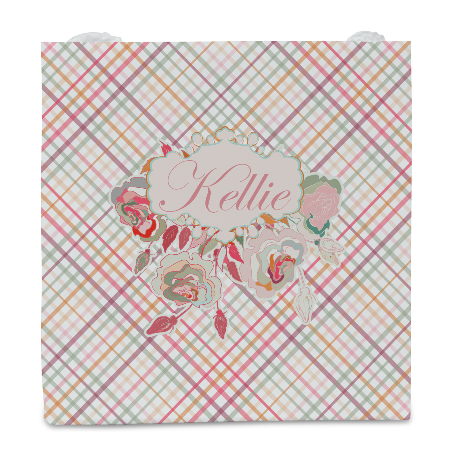 To make it really feminine, we chose a matching floral label that coordinates perfectly with the modern plaid. We chose to use a name personalization in our crown jewels font. We think this is a beautiful elegant design.