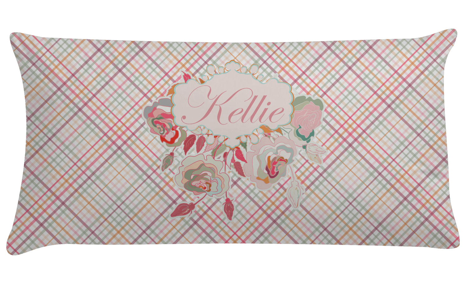 To make it really feminine, we chose a matching floral label that coordinates perfectly with the modern plaid. We chose to use a name personalization in our crown jewels font. We think this is a beautiful elegant design.