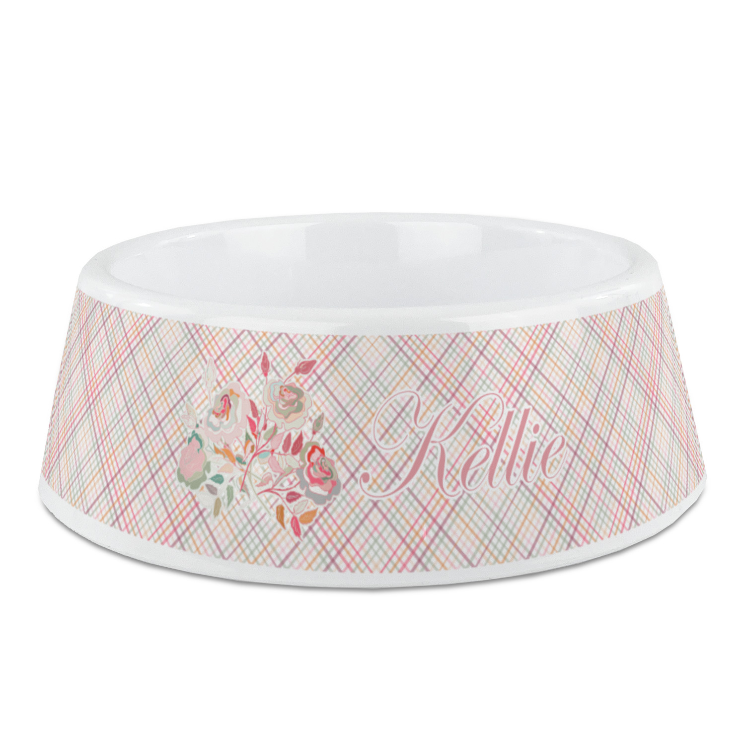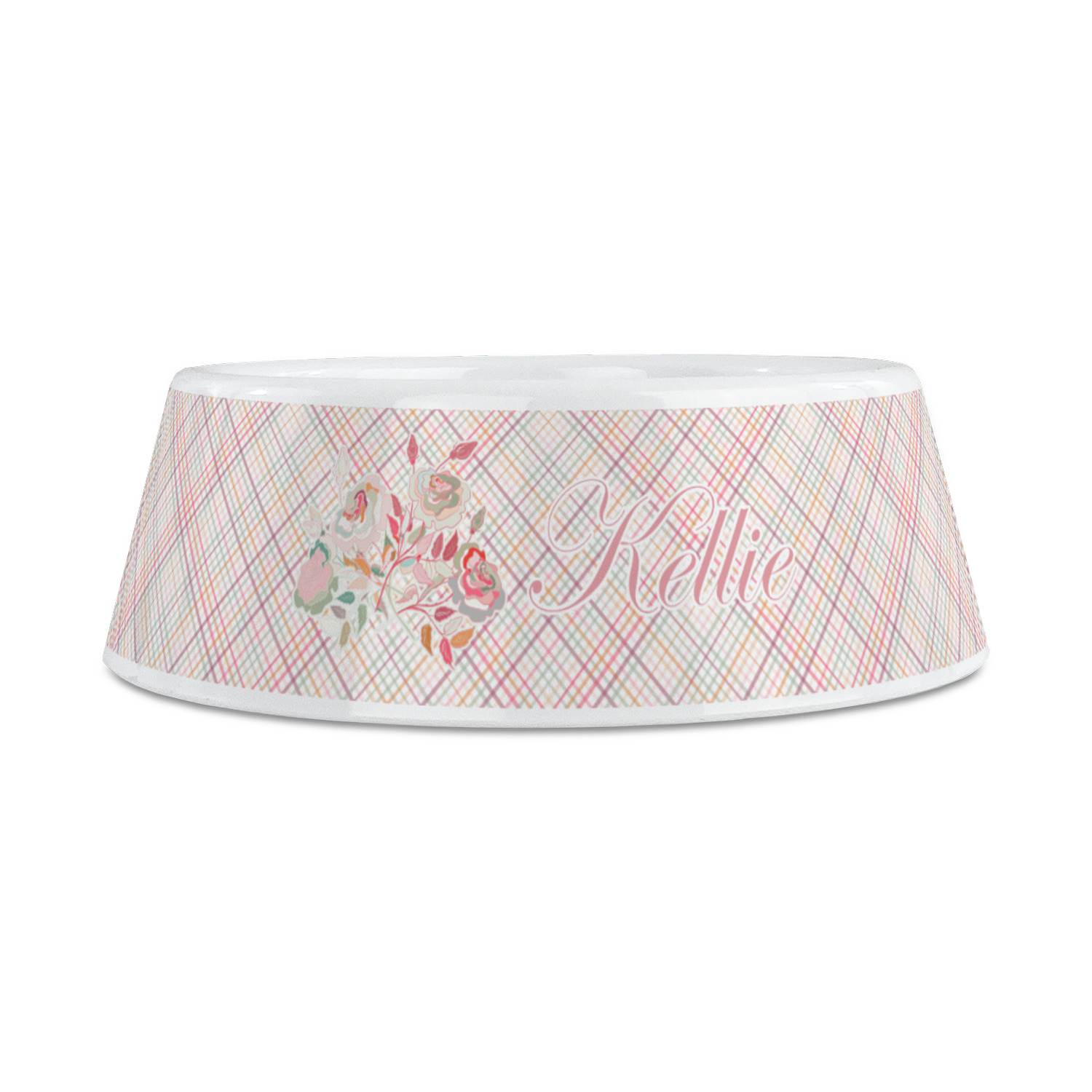 To make it really feminine, we chose a matching floral label that coordinates perfectly with the modern plaid. We chose to use a name personalization in our crown jewels font. We think this is a beautiful elegant design.