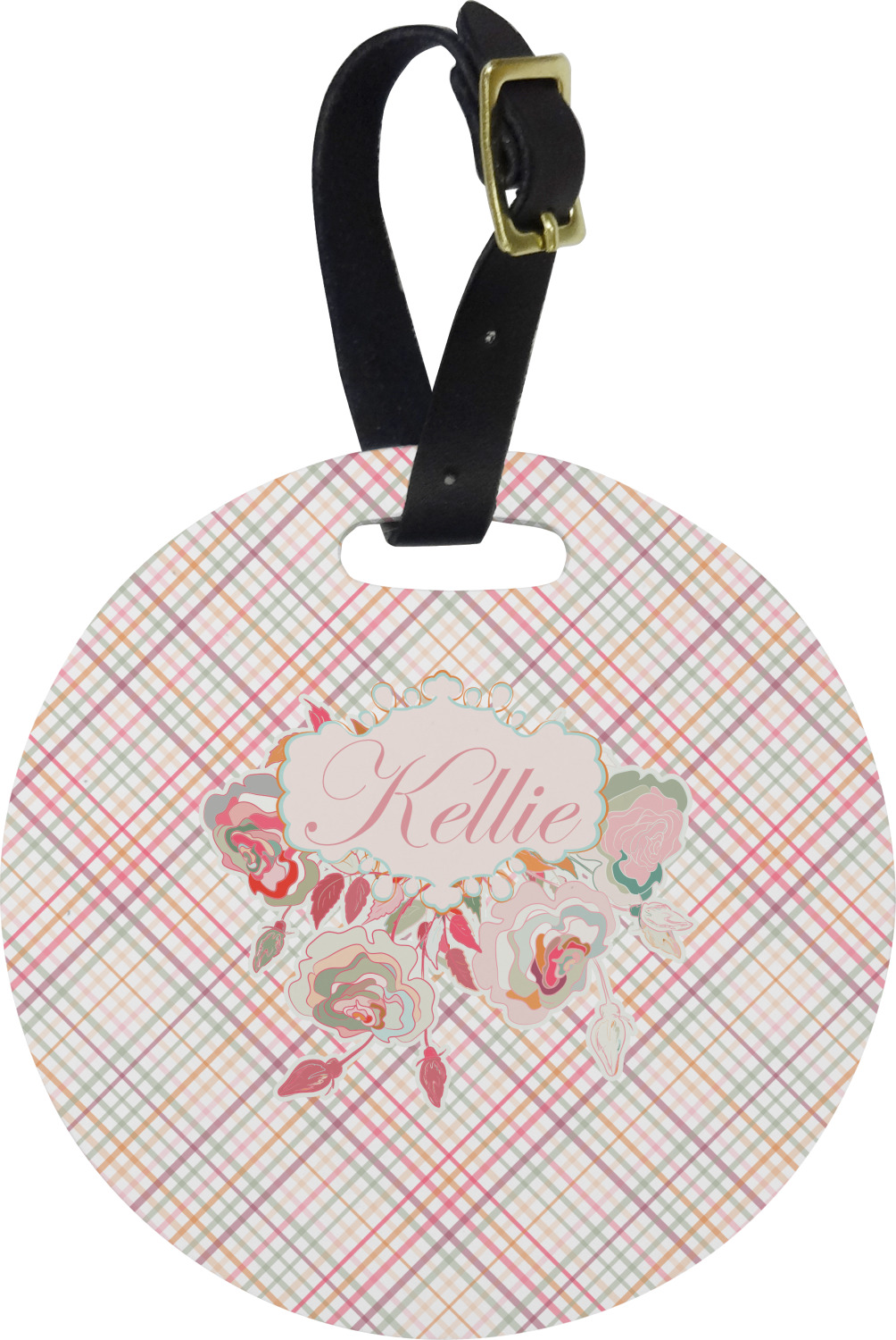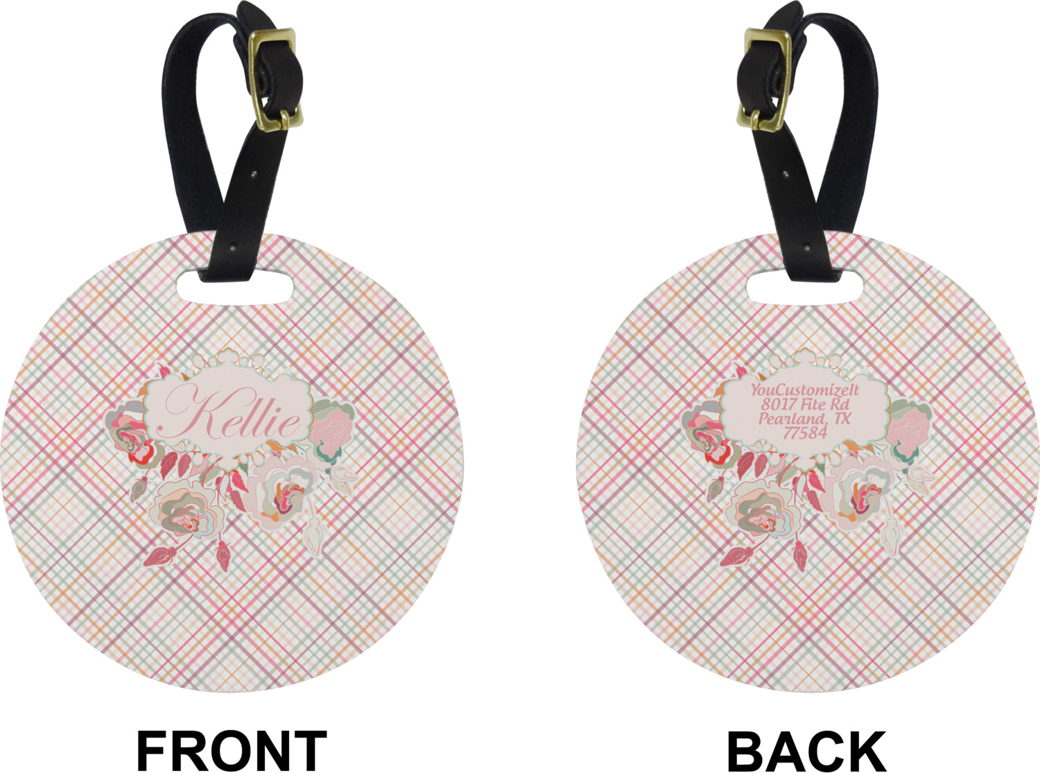 These personalized bag tags are sold in a variety of shapes, so that you may find the product that meets your vision exactly. We sell a round luggage tag, which measures at approximately 4" x 4". Our square luggage tag is about 3.5" x 3.5", while our rectangular version is 2.75" x 4 ".