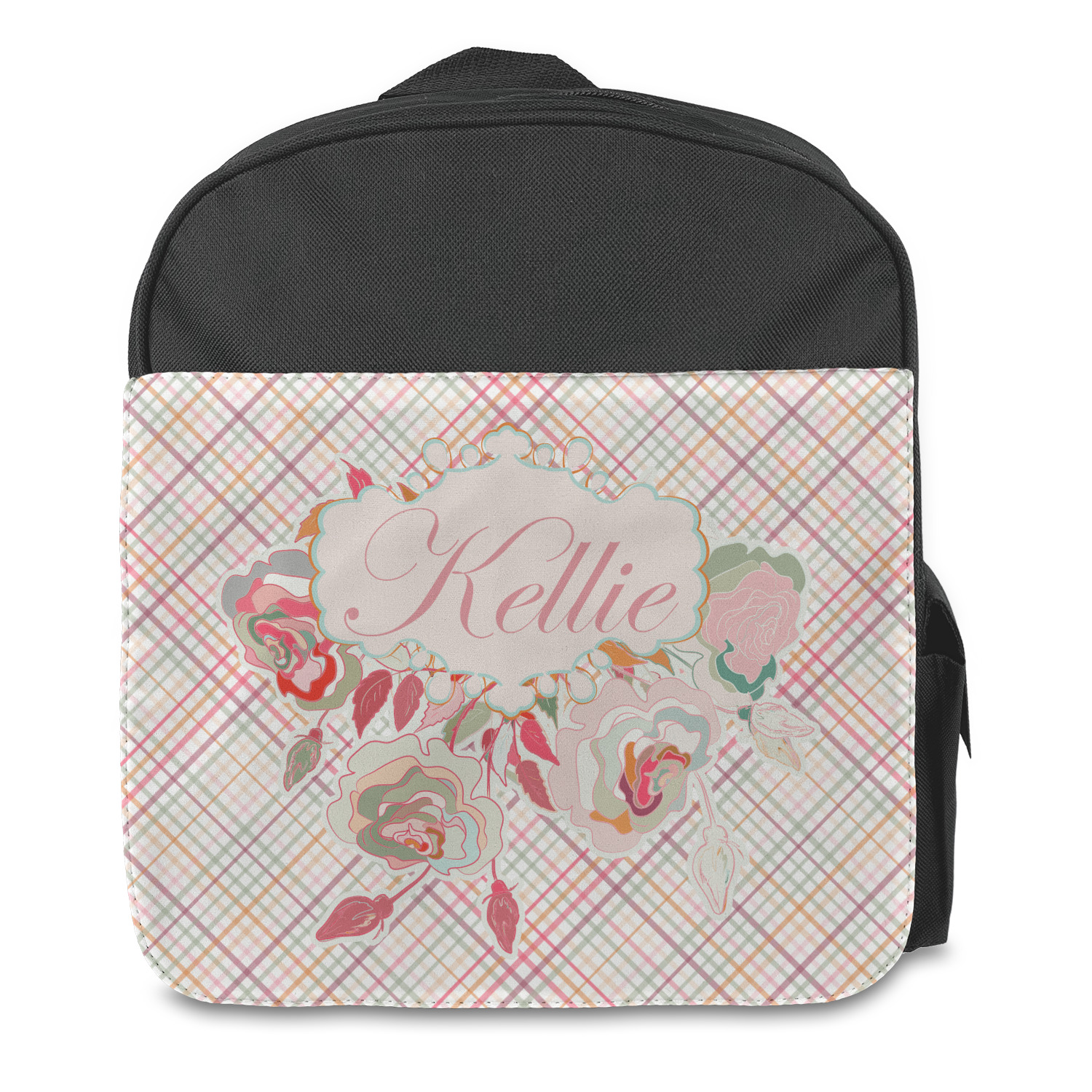 To make it really feminine, we chose a matching floral label that coordinates perfectly with the modern plaid. We chose to use a name personalization in our crown jewels font. We think this is a beautiful elegant design.