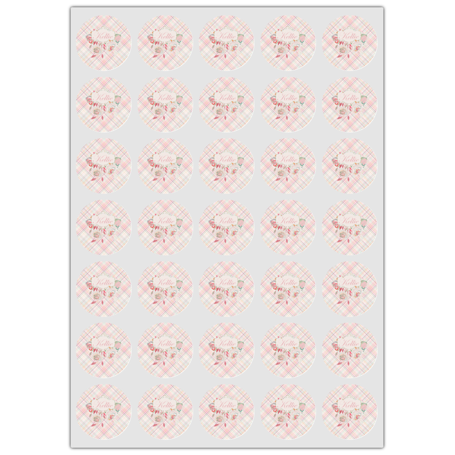 To make it really feminine, we chose a matching floral label that coordinates perfectly with the modern plaid. We chose to use a name personalization in our crown jewels font. We think this is a beautiful elegant design.