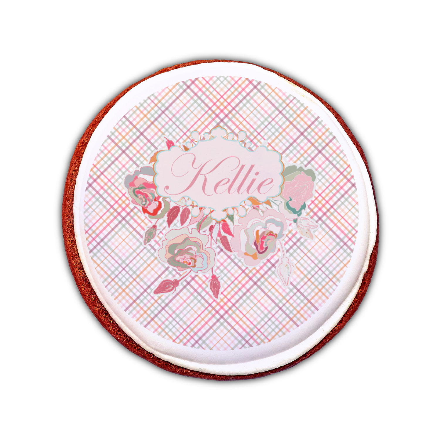 To make it really feminine, we chose a matching floral label that coordinates perfectly with the modern plaid. We chose to use a name personalization in our crown jewels font. We think this is a beautiful elegant design.