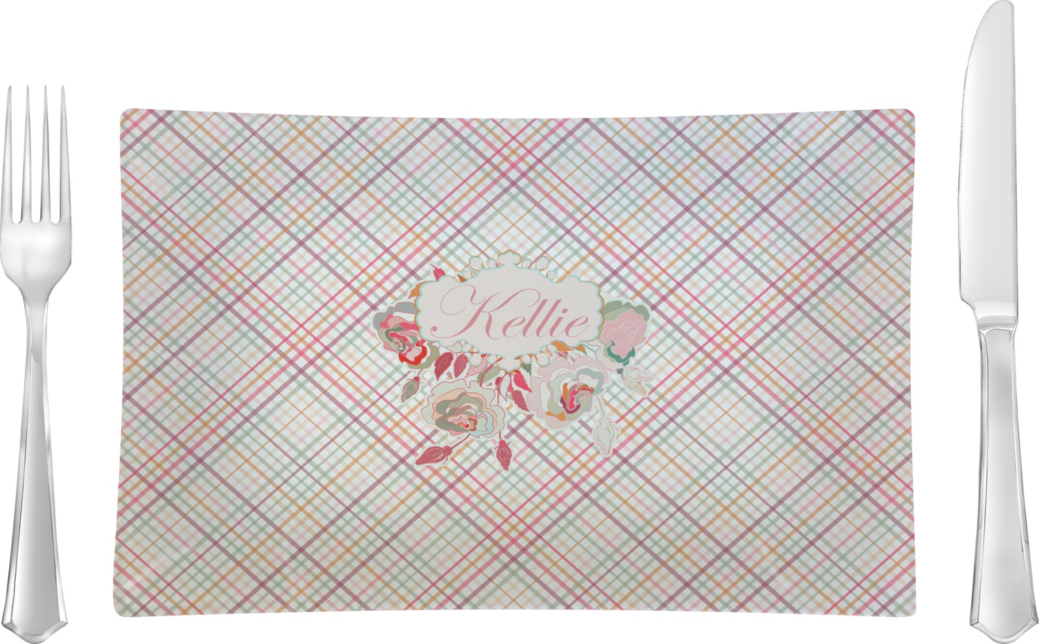 To make it really feminine, we chose a matching floral label that coordinates perfectly with the modern plaid. We chose to use a name personalization in our crown jewels font. We think this is a beautiful elegant design.