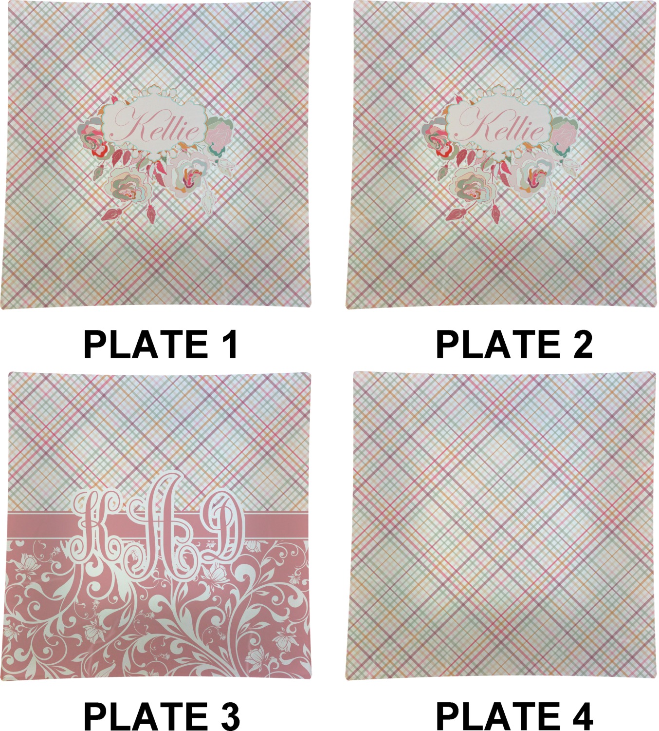 To make it really feminine, we chose a matching floral label that coordinates perfectly with the modern plaid. We chose to use a name personalization in our crown jewels font. We think this is a beautiful elegant design.
