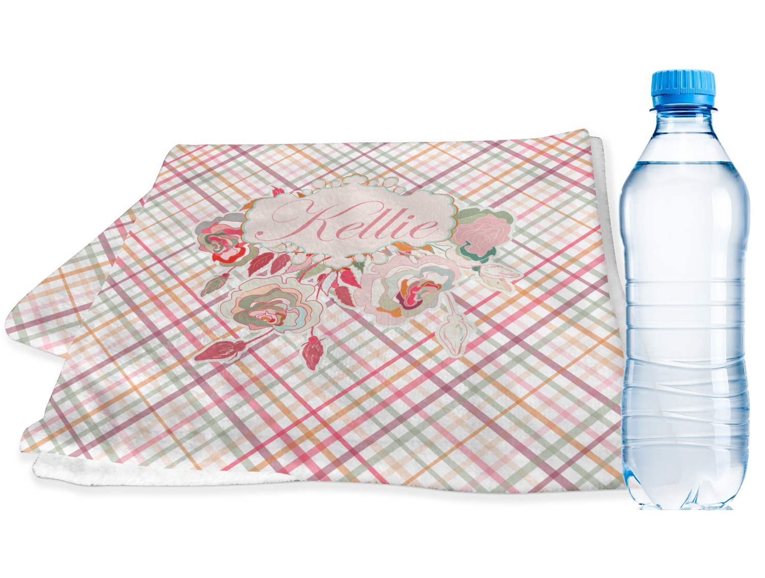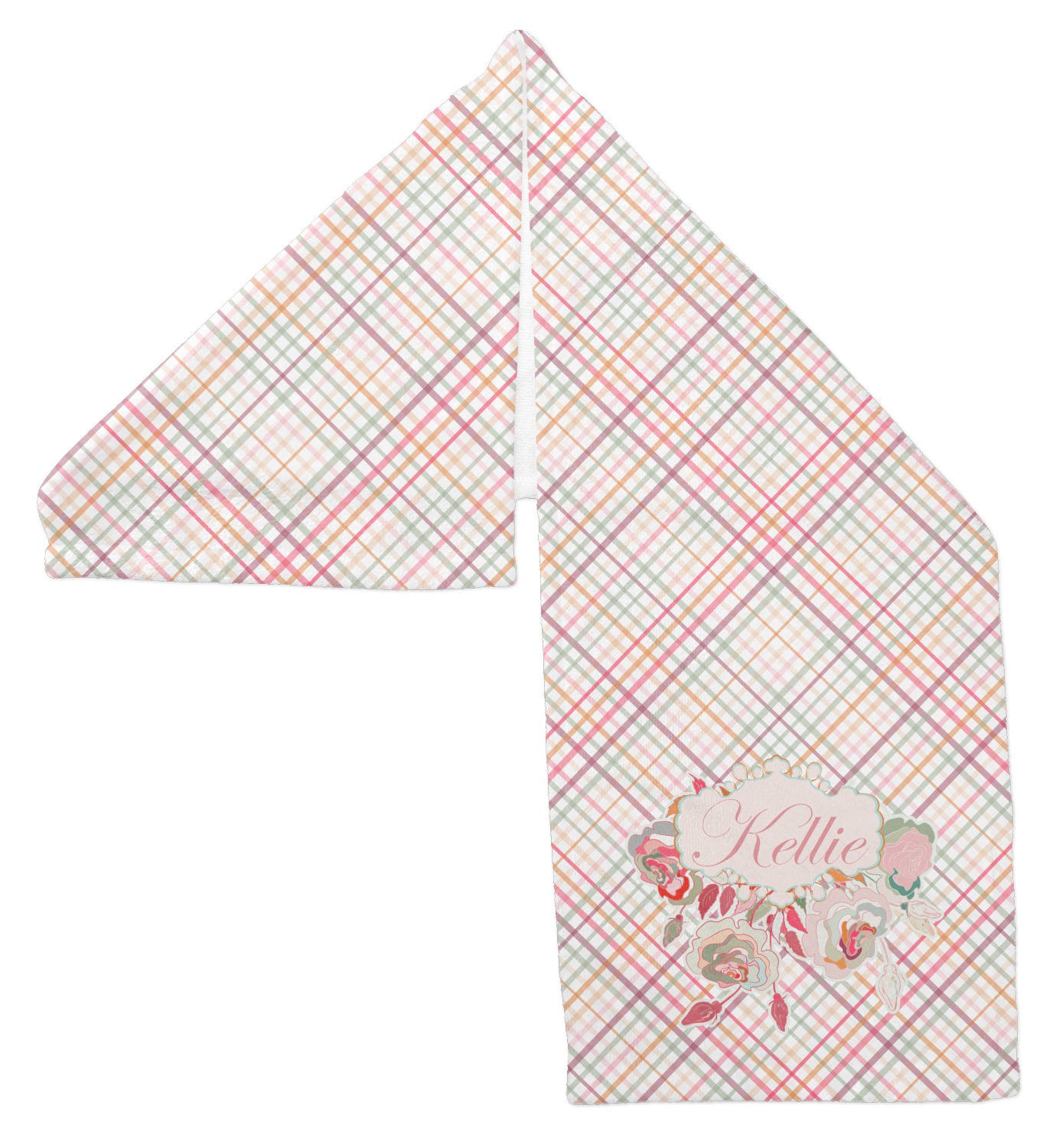 To make it really feminine, we chose a matching floral label that coordinates perfectly with the modern plaid. We chose to use a name personalization in our crown jewels font. We think this is a beautiful elegant design.