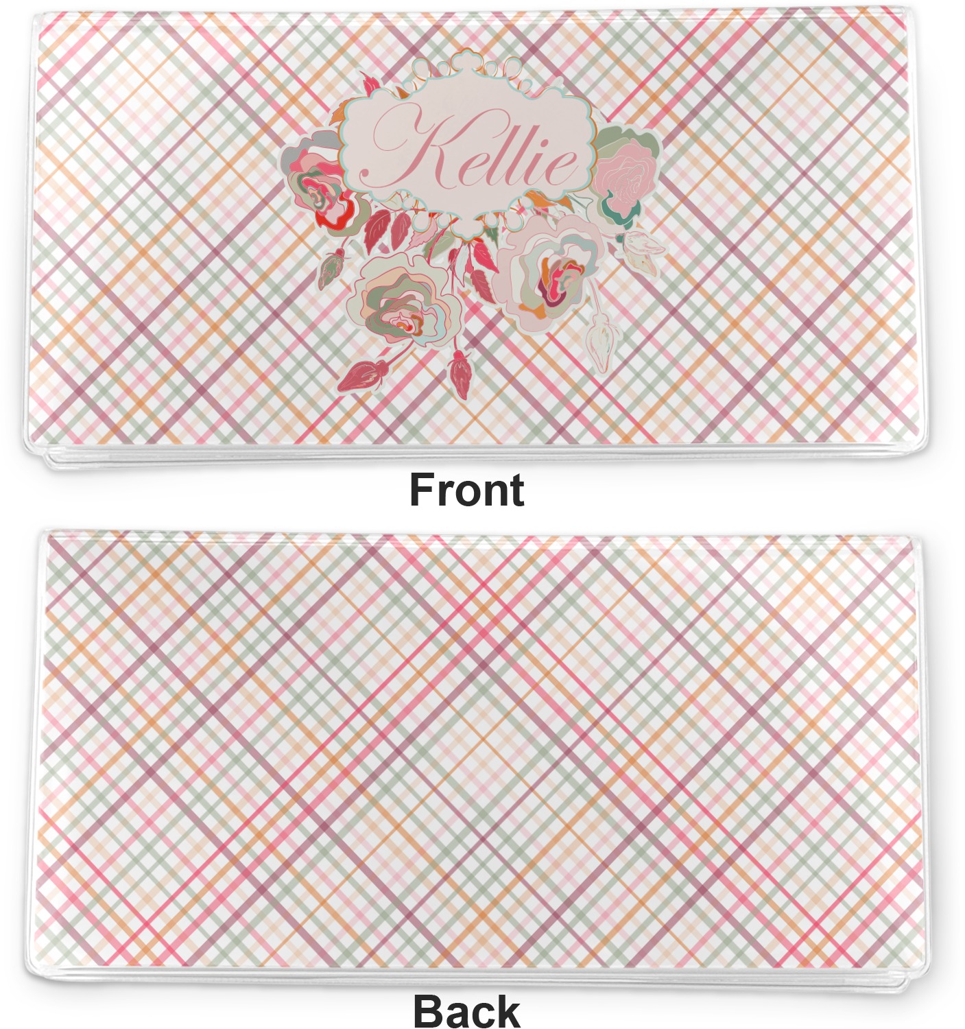 To make it really feminine, we chose a matching floral label that coordinates perfectly with the modern plaid. We chose to use a name personalization in our crown jewels font. We think this is a beautiful elegant design.