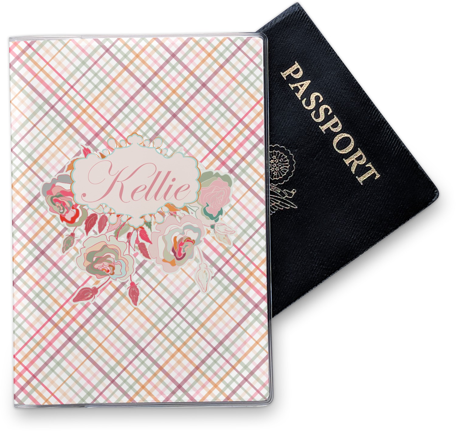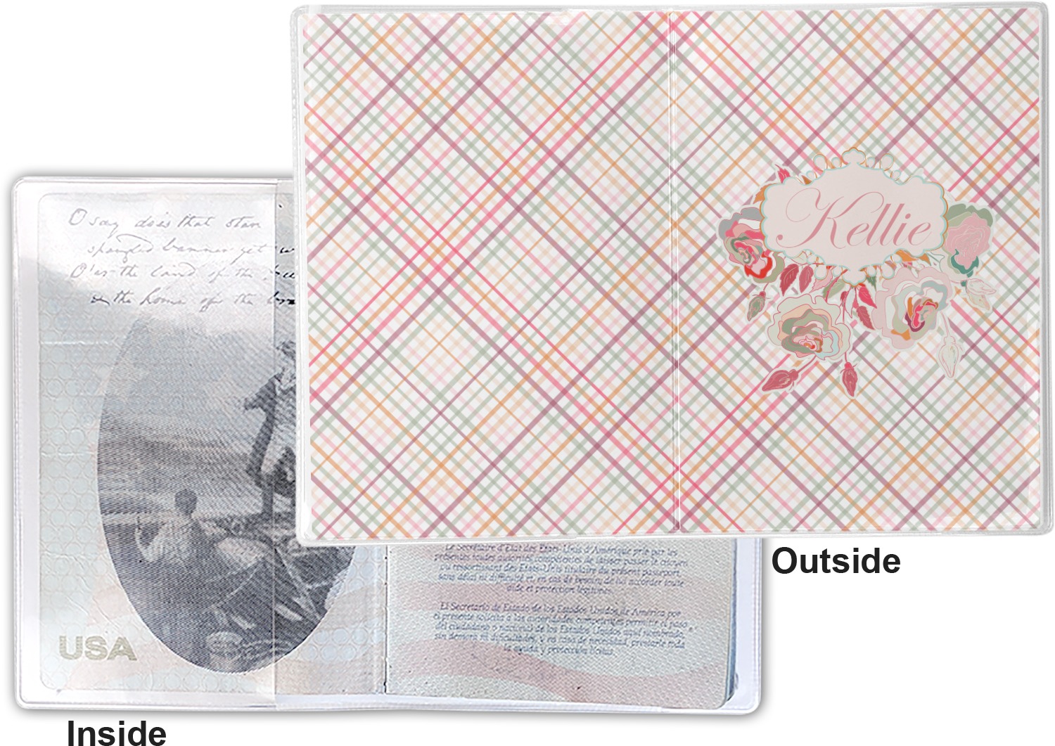 This cover is made of a sturdy clear vinyl with a personalized vinyl insert inside. There is a large and a small pocket on either side to hold the covers of your passport easily and firmly. The passport holder is approximately 7.5" x 5.25", the perfect size to snugly fit your passport. This slim cover is the perfect way to protect your passport without being one more bulky item you have to carry.