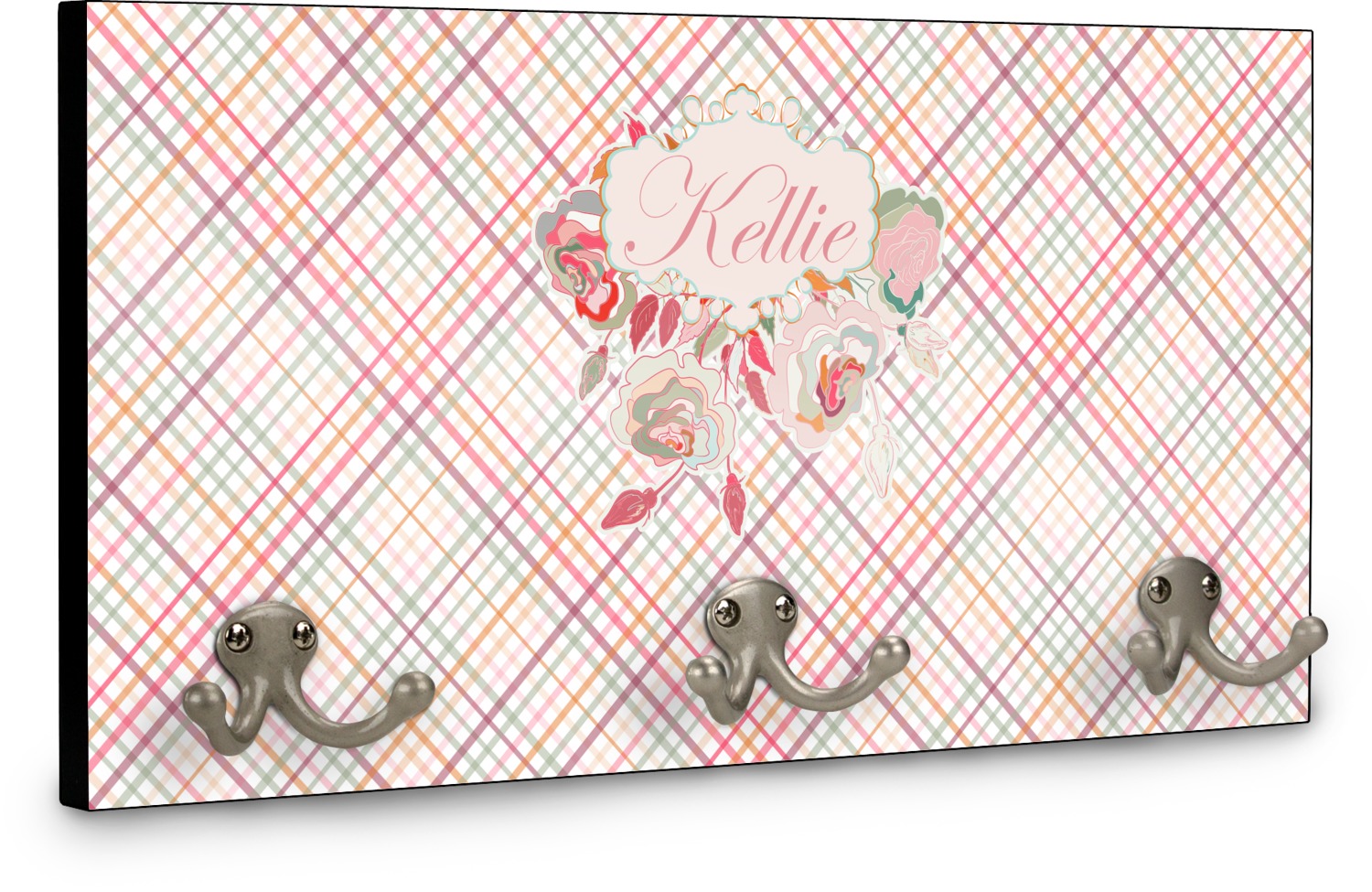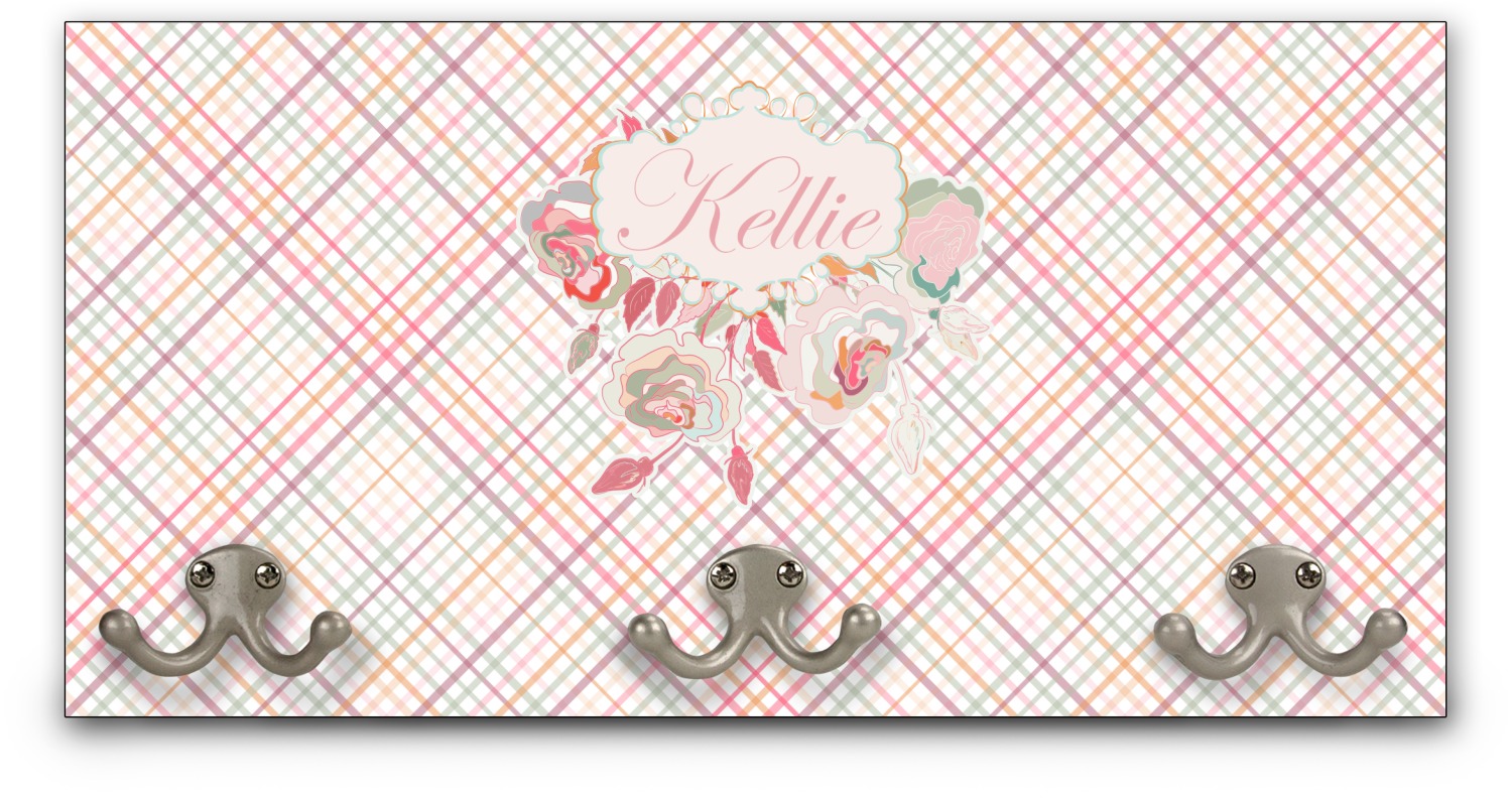 To make it really feminine, we chose a matching floral label that coordinates perfectly with the modern plaid. We chose to use a name personalization in our crown jewels font. We think this is a beautiful elegant design.