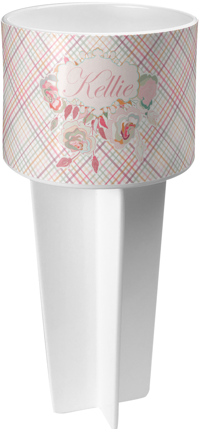 This cup holder has a large stake at its bottom that anchors it to the sand or ground below, while the cup holder rests above the stake. The entire drink holder is made of durable plastic and displays your customization around the cup holder portion. We sell these personalized beach spikers in two different colors: black and white.