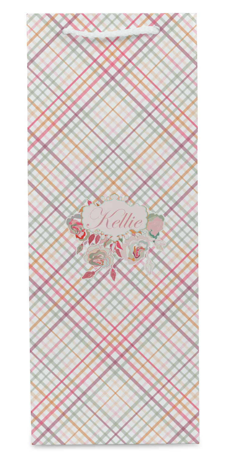 To make it really feminine, we chose a matching floral label that coordinates perfectly with the modern plaid. We chose to use a name personalization in our crown jewels font. We think this is a beautiful elegant design.