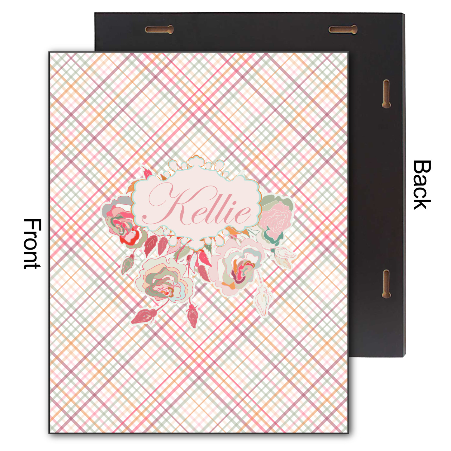 To make it really feminine, we chose a matching floral label that coordinates perfectly with the modern plaid. We chose to use a name personalization in our crown jewels font. We think this is a beautiful elegant design.