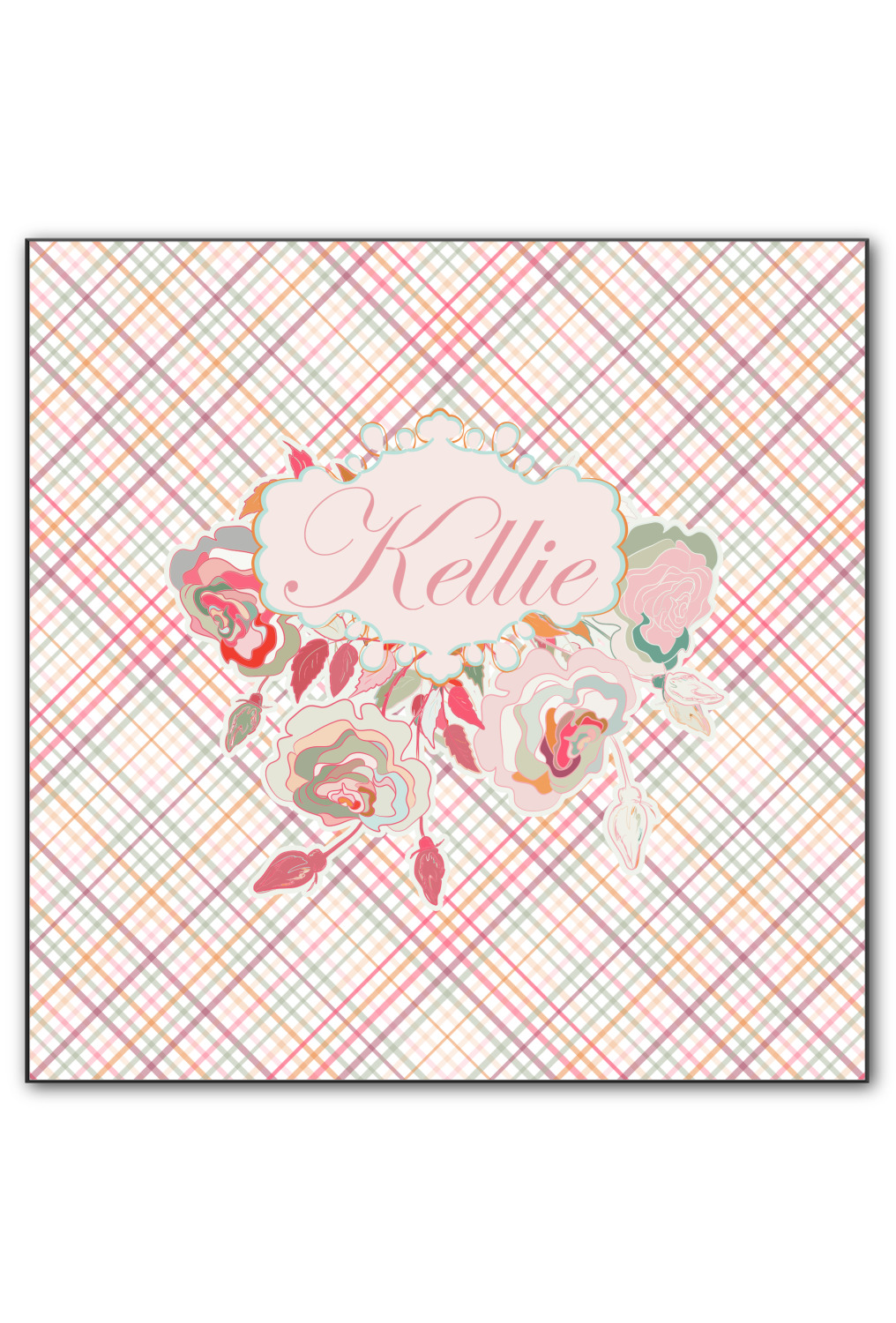 To make it really feminine, we chose a matching floral label that coordinates perfectly with the modern plaid. We chose to use a name personalization in our crown jewels font. We think this is a beautiful elegant design.