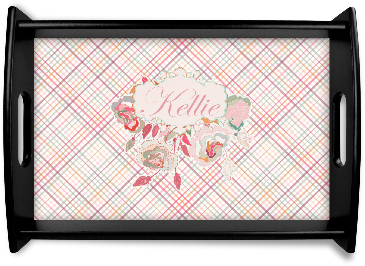 To make it really feminine, we chose a matching floral label that coordinates perfectly with the modern plaid. We chose to use a name personalization in our crown jewels font. We think this is a beautiful elegant design.