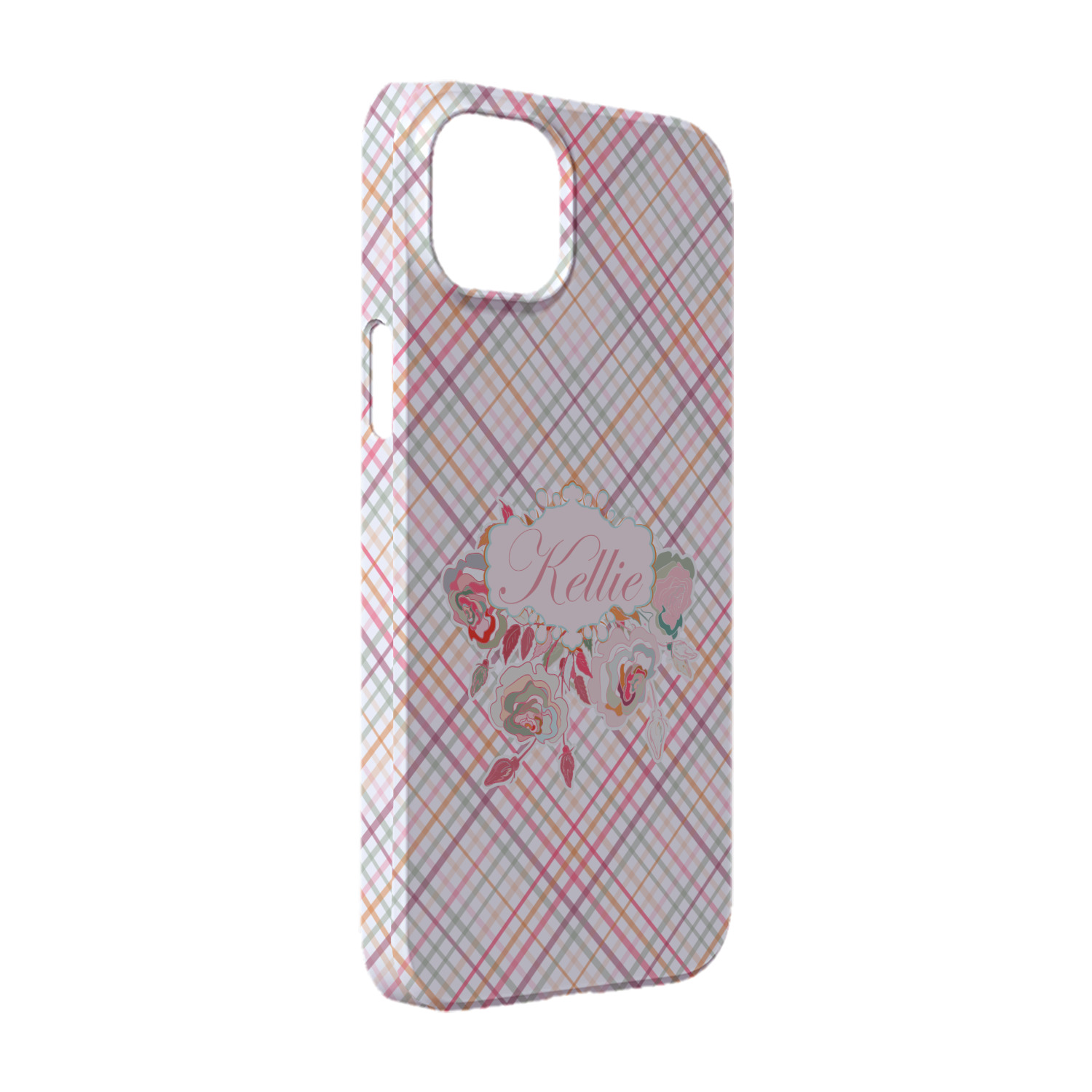 To make it really feminine, we chose a matching floral label that coordinates perfectly with the modern plaid. We chose to use a name personalization in our crown jewels font. We think this is a beautiful elegant design.