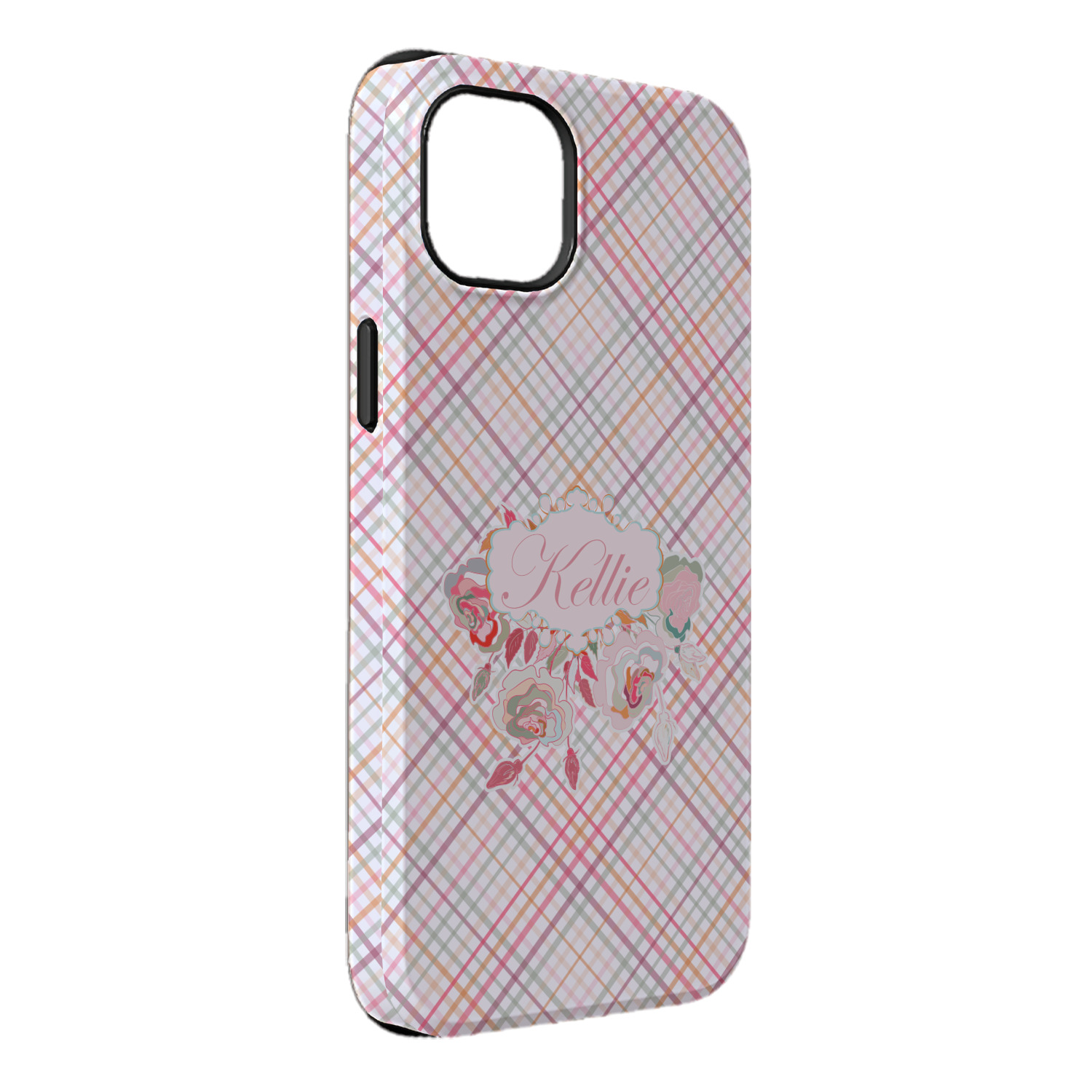 To make it really feminine, we chose a matching floral label that coordinates perfectly with the modern plaid. We chose to use a name personalization in our crown jewels font. We think this is a beautiful elegant design.