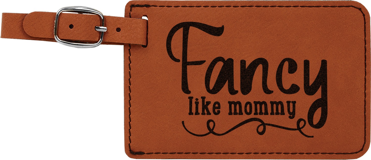 This luggage tag will surely be able to get you started in having all the right tools for traveling. It is made of a beautiful leatherette material that is a nice shade of cognac brown. The front of the tag is where your design goes. The sturdy black stitching gives your design an extra pop and gives the tag extra durability. The back of the tag has a clear vinyl window where you can slip in your address card. The tag comes with a great little buckle strap that you can easily use to clip to your suitcase. The tag itself measures at approximately 5.5"W x 4.25"H.