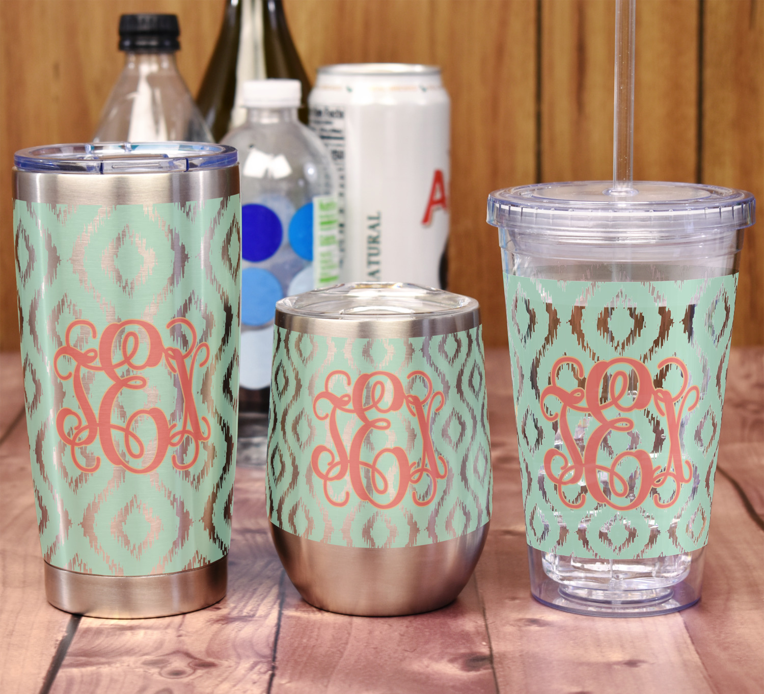Are you a monogram-a-holic? Then, this design is perfect for you. With a subtle mint green ikat background, your monogram takes center stage in a bold coral. Let us indulge your obsession with this precious design!!