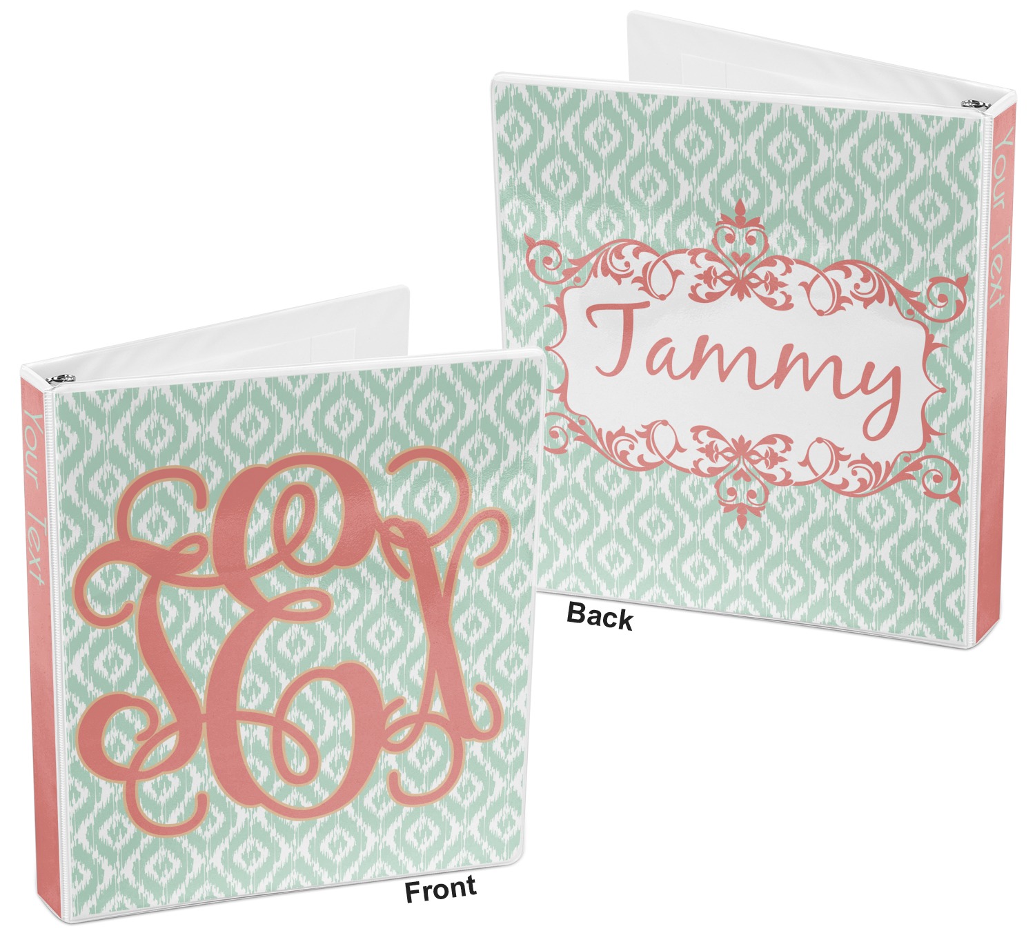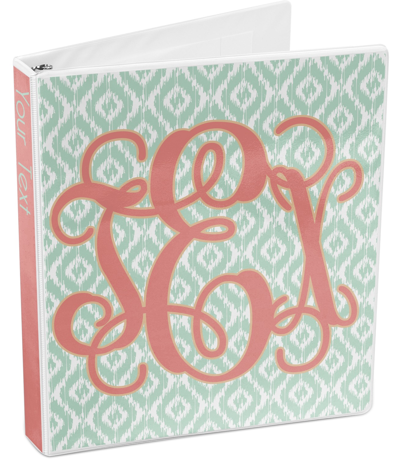 Are you a monogram-a-holic? Then, this design is perfect for you. With a subtle mint green ikat background, your monogram takes center stage in a bold coral. Let us indulge your obsession with this precious design!!
