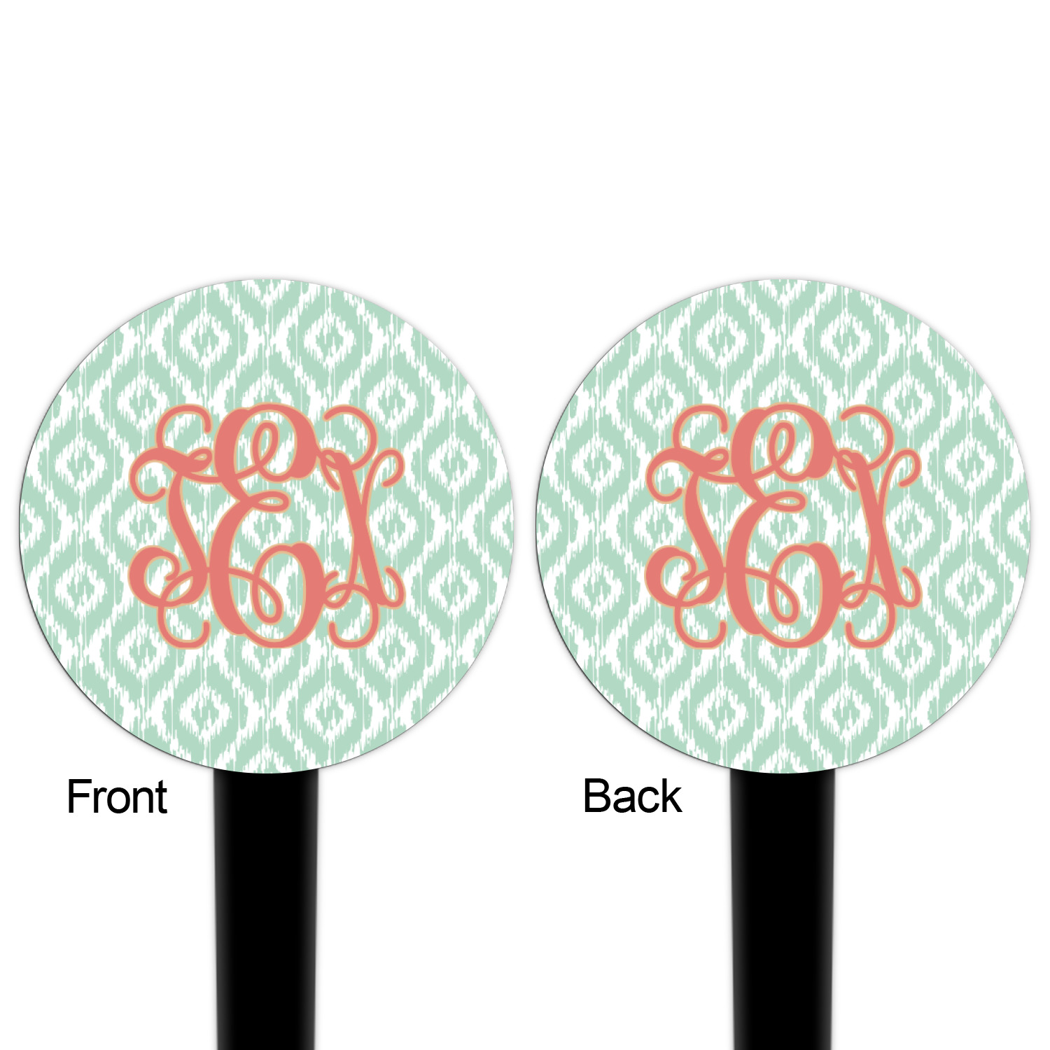 Are you a monogram-a-holic? Then, this design is perfect for you. With a subtle mint green ikat background, your monogram takes center stage in a bold coral. Let us indulge your obsession with this precious design!!