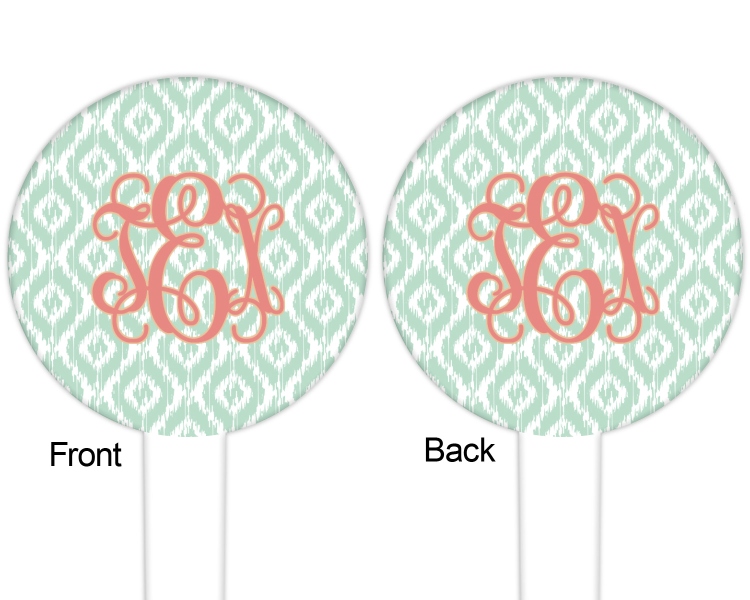 Are you a monogram-a-holic? Then, this design is perfect for you. With a subtle mint green ikat background, your monogram takes center stage in a bold coral. Let us indulge your obsession with this precious design!!