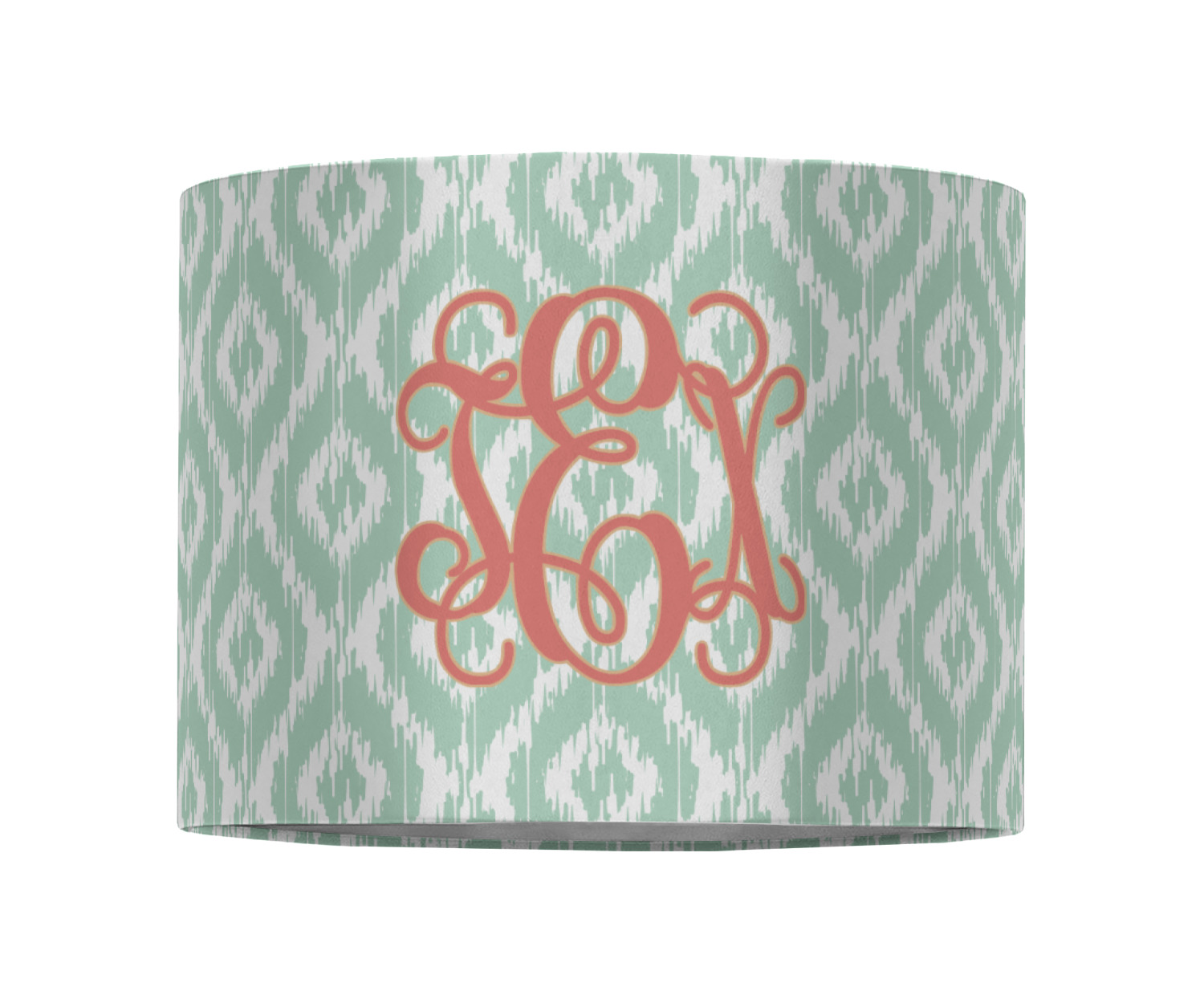 Are you a monogram-a-holic? Then, this design is perfect for you. With a subtle mint green ikat background, your monogram takes center stage in a bold coral. Let us indulge your obsession with this precious design!!