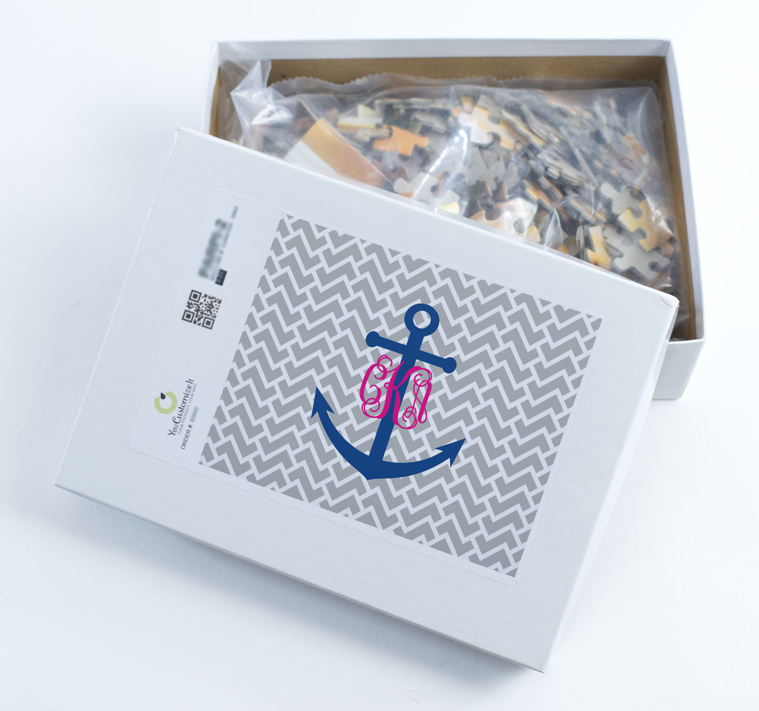 We print our puzzles on thick white chipboard in vibrant colors, then laminate the chipboard and die cut your puzzle. Your jigsaw puzzle is shipped to you in a box with the image of the puzzle on the box.