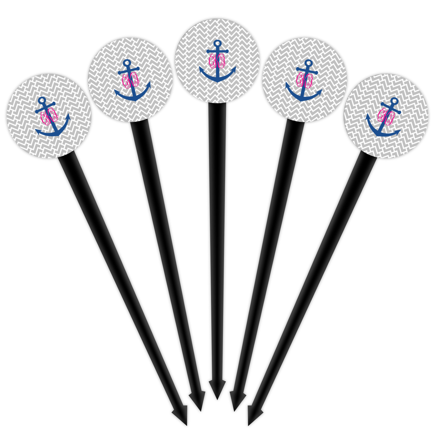 Coastal / Beach Style Designs for 4" Round Plastic Food Picks - Black - Single-Sided