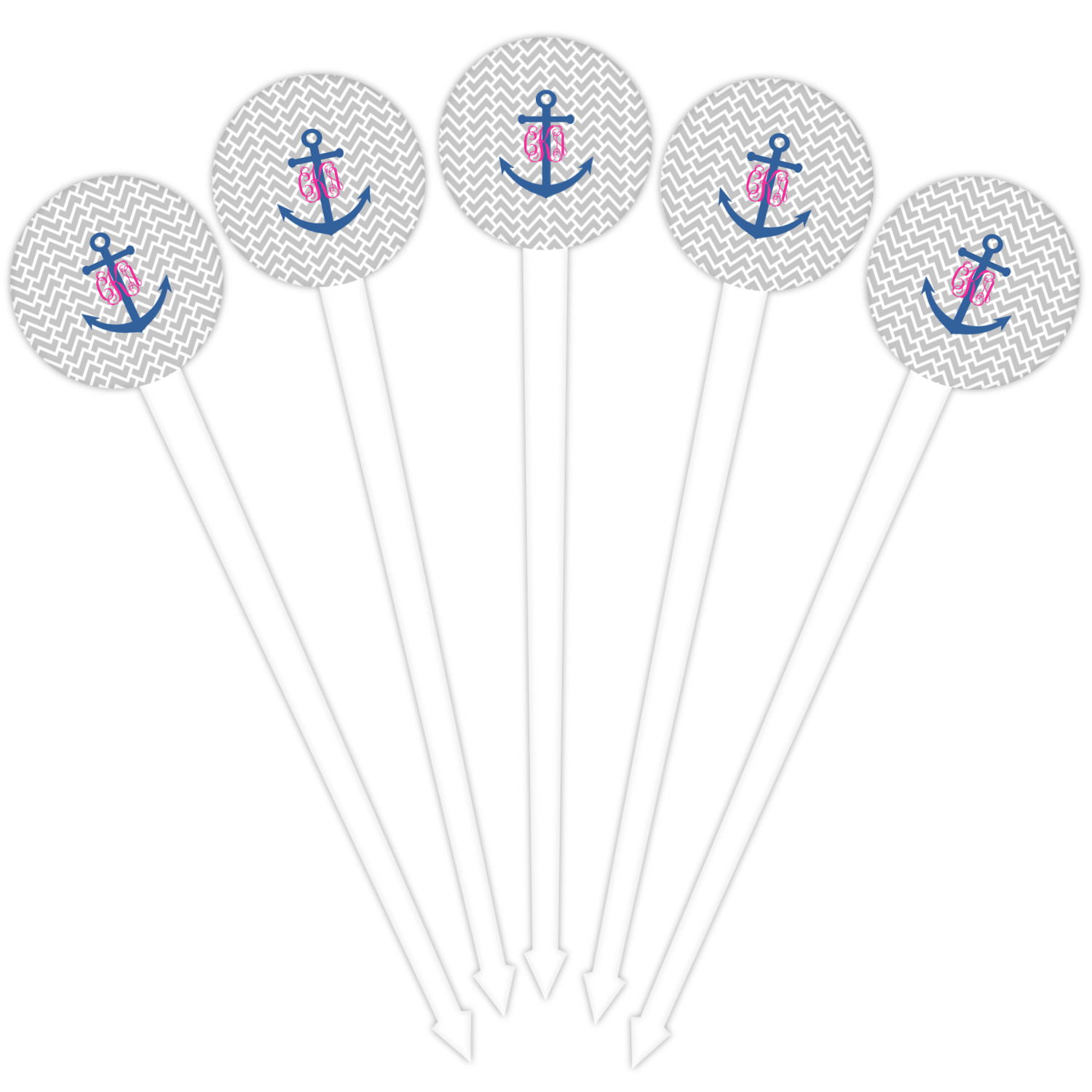 Coastal / Beach Style Designs for 4" Round Plastic Food Picks - White - Single-Sided