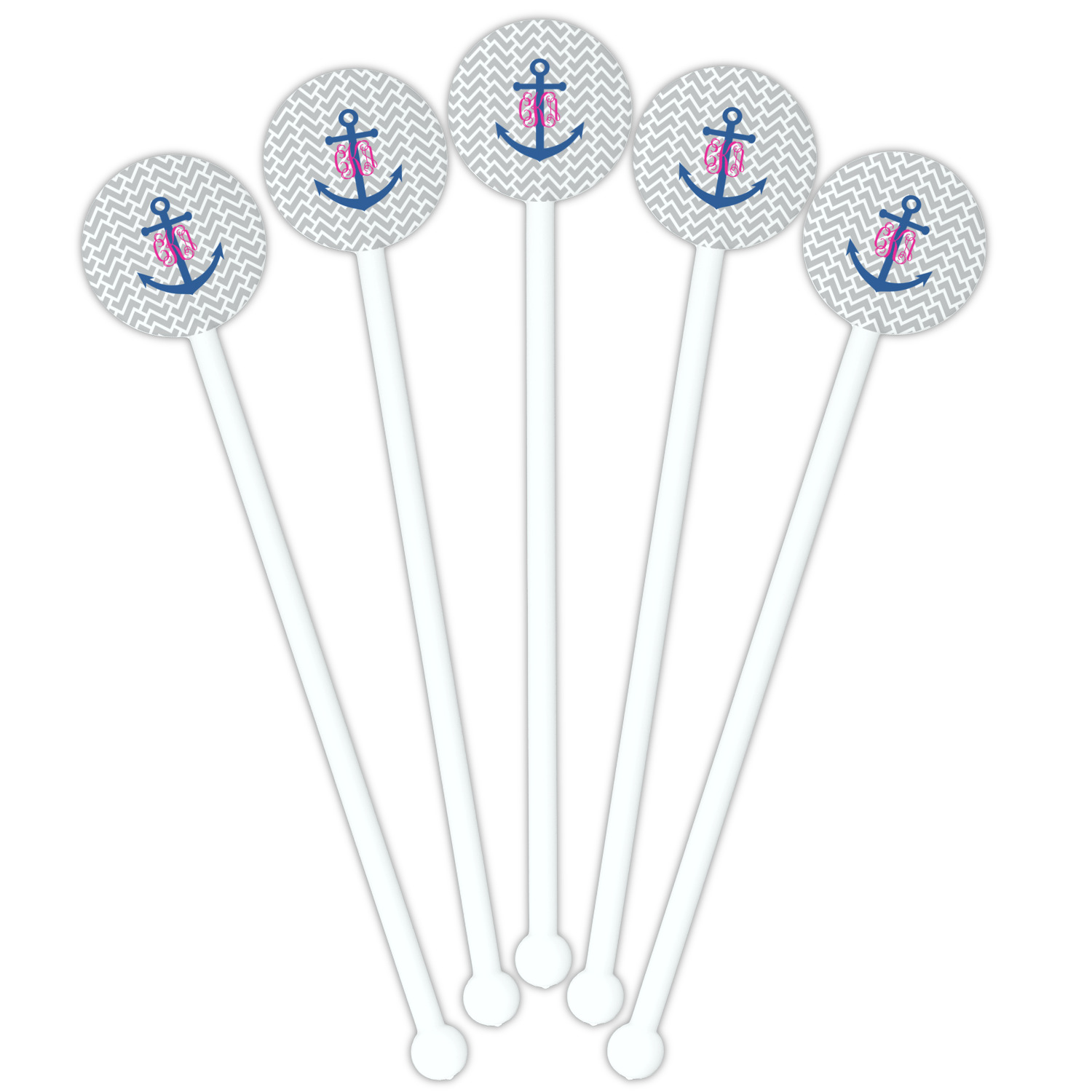 Coastal / Beach Style Designs for 5.5" Round Plastic Stir Sticks - White - Single-Sided