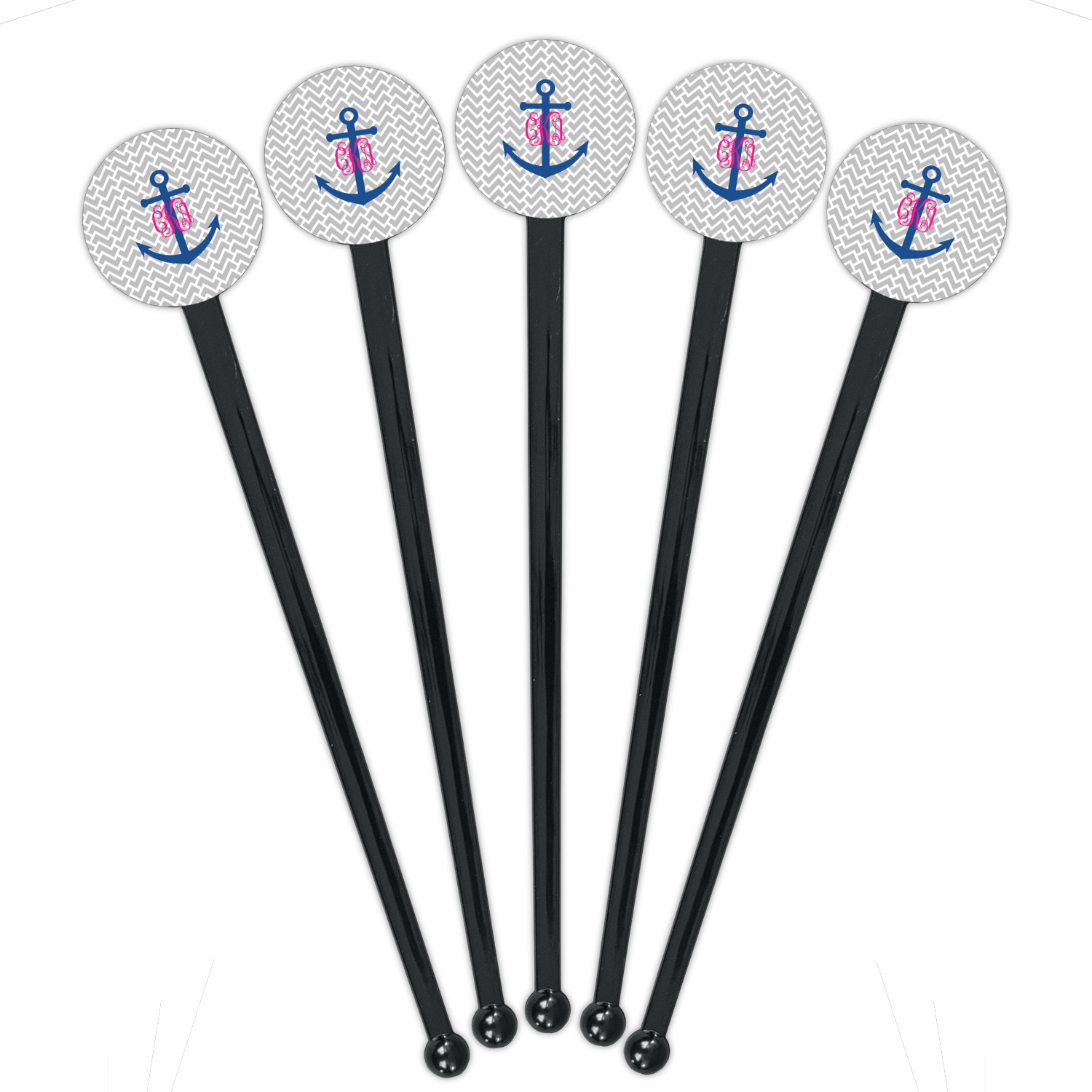 Coastal / Beach Style Designs for 7" Round Plastic Stir Sticks - Black - Single-Sided
