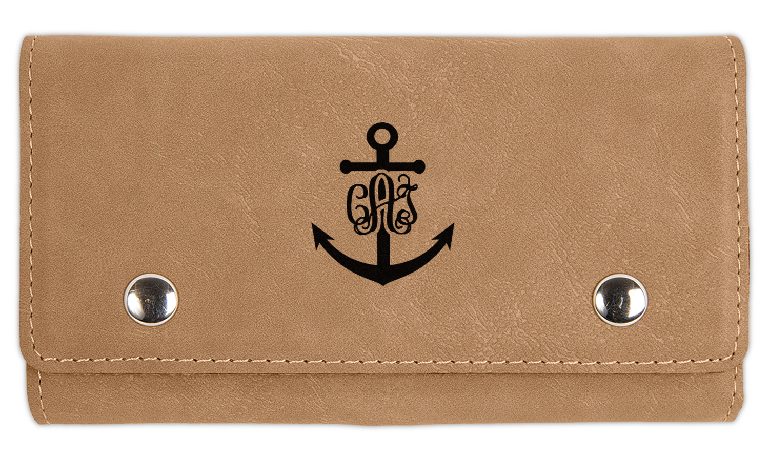 This design perfect for someone who loves anchors and monograms. In this beautiful design, we features a zigzag pattern for the background. We chose a neutral light gray color. For the foreground we chose a simple anchor in blue and we added an interlocking monogram in hot pink on top of the anchor.