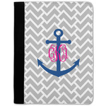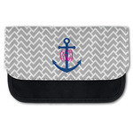 This design perfect for someone who loves anchors and monograms. In this beautiful design, we features a zigzag pattern for the background. We chose a neutral light gray color. For the foreground we chose a simple anchor in blue and we added an interlocking monogram in hot pink on top of the anchor.