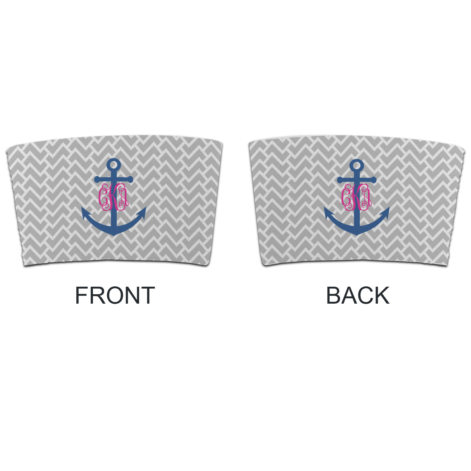 This design perfect for someone who loves anchors and monograms. In this beautiful design, we features a zigzag pattern for the background. We chose a neutral light gray color. For the foreground we chose a simple anchor in blue and we added an interlocking monogram in hot pink on top of the anchor.