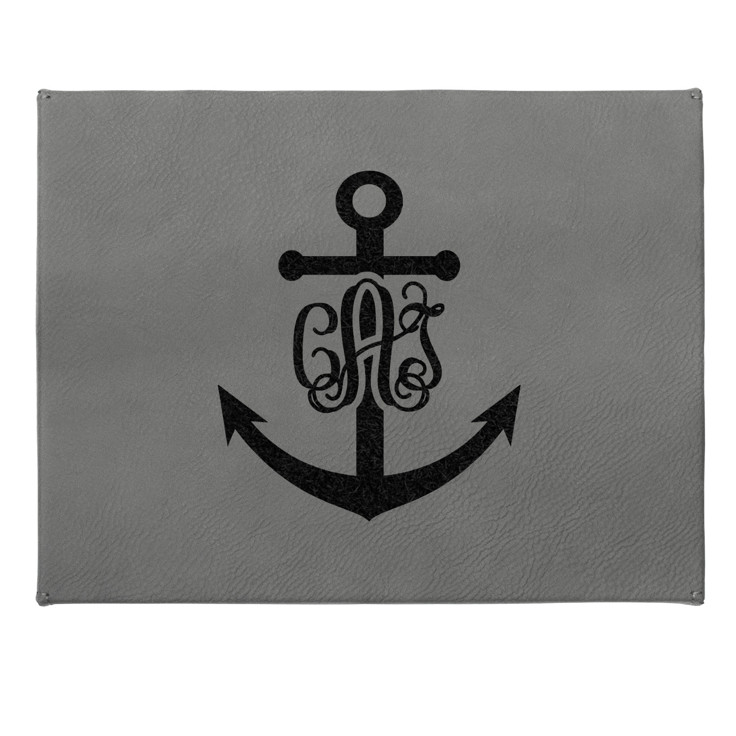 This design perfect for someone who loves anchors and monograms. In this beautiful design, we features a zigzag pattern for the background. We chose a neutral light gray color. For the foreground we chose a simple anchor in blue and we added an interlocking monogram in hot pink on top of the anchor.
