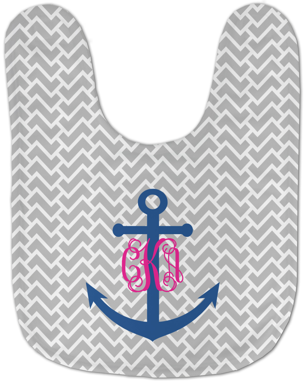 This design perfect for someone who loves anchors and monograms. In this beautiful design, we features a zigzag pattern for the background. We chose a neutral light gray color. For the foreground we chose a simple anchor in blue and we added an interlocking monogram in hot pink on top of the anchor.