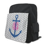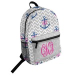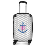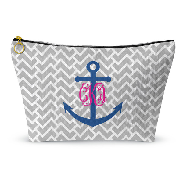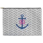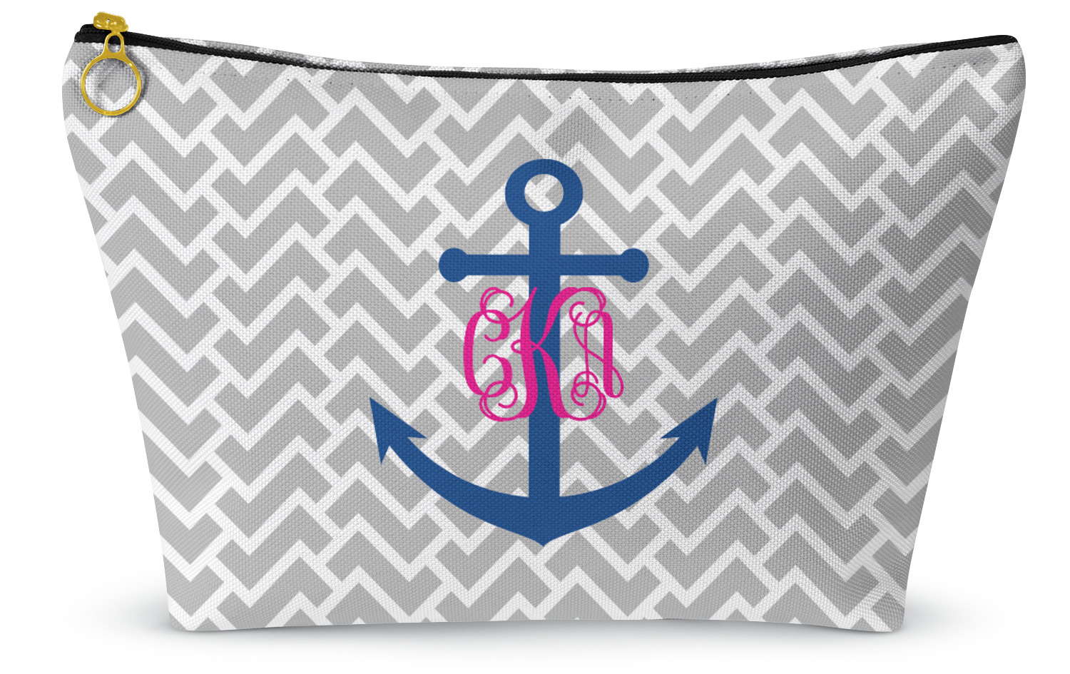 This design perfect for someone who loves anchors and monograms. In this beautiful design, we features a zigzag pattern for the background. We chose a neutral light gray color. For the foreground we chose a simple anchor in blue and we added an interlocking monogram in hot pink on top of the anchor.