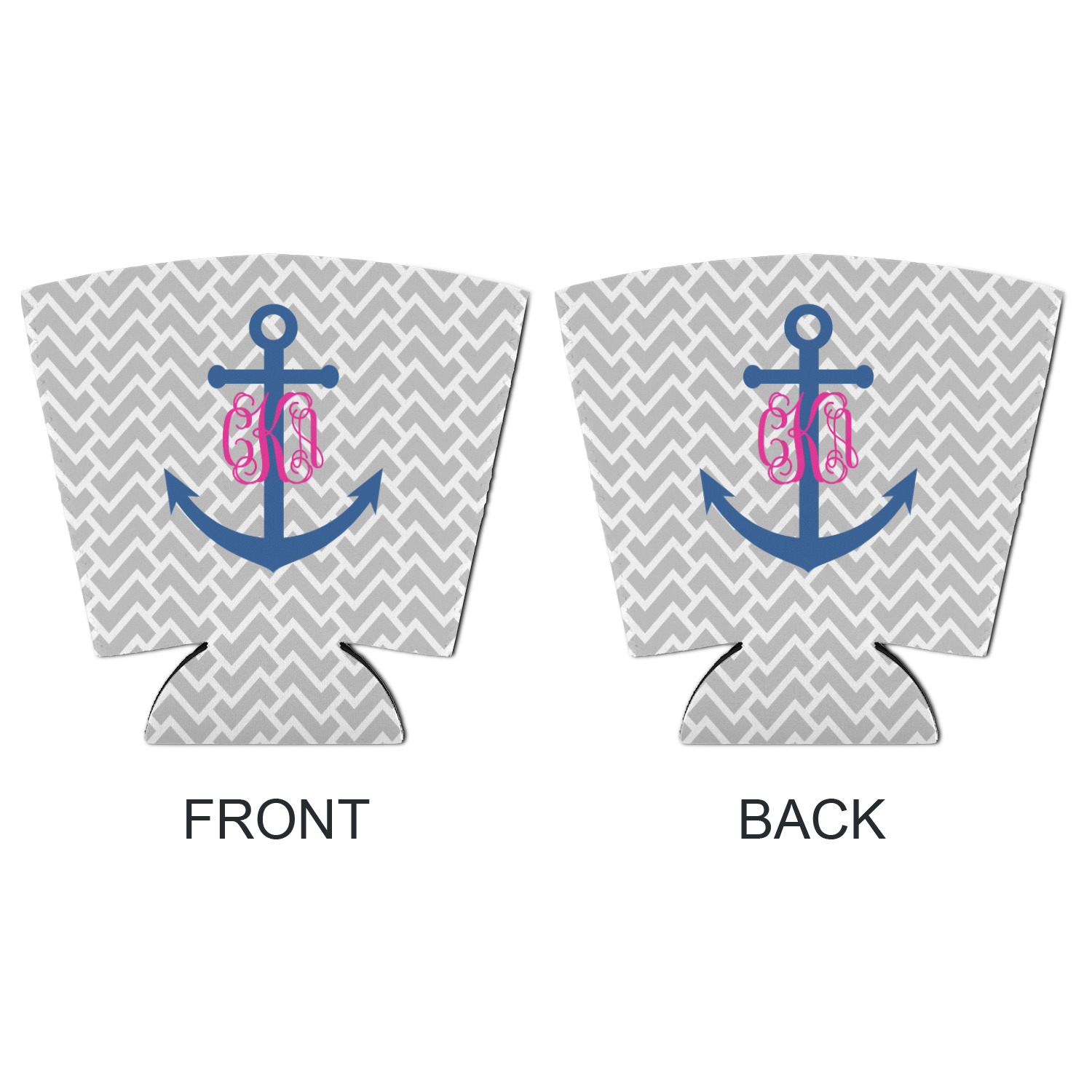 This design perfect for someone who loves anchors and monograms. In this beautiful design, we features a zigzag pattern for the background. We chose a neutral light gray color. For the foreground we chose a simple anchor in blue and we added an interlocking monogram in hot pink on top of the anchor.