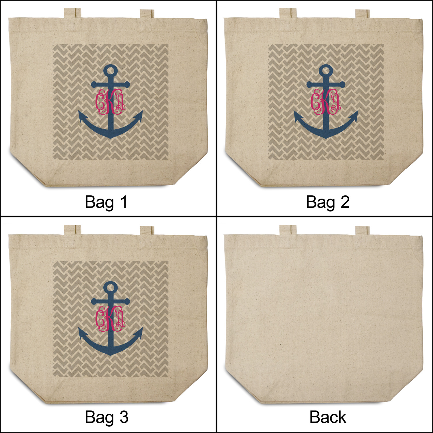 Coastal / Beach Style Designs for Reusable Cotton Grocery Bags - Set of 3
