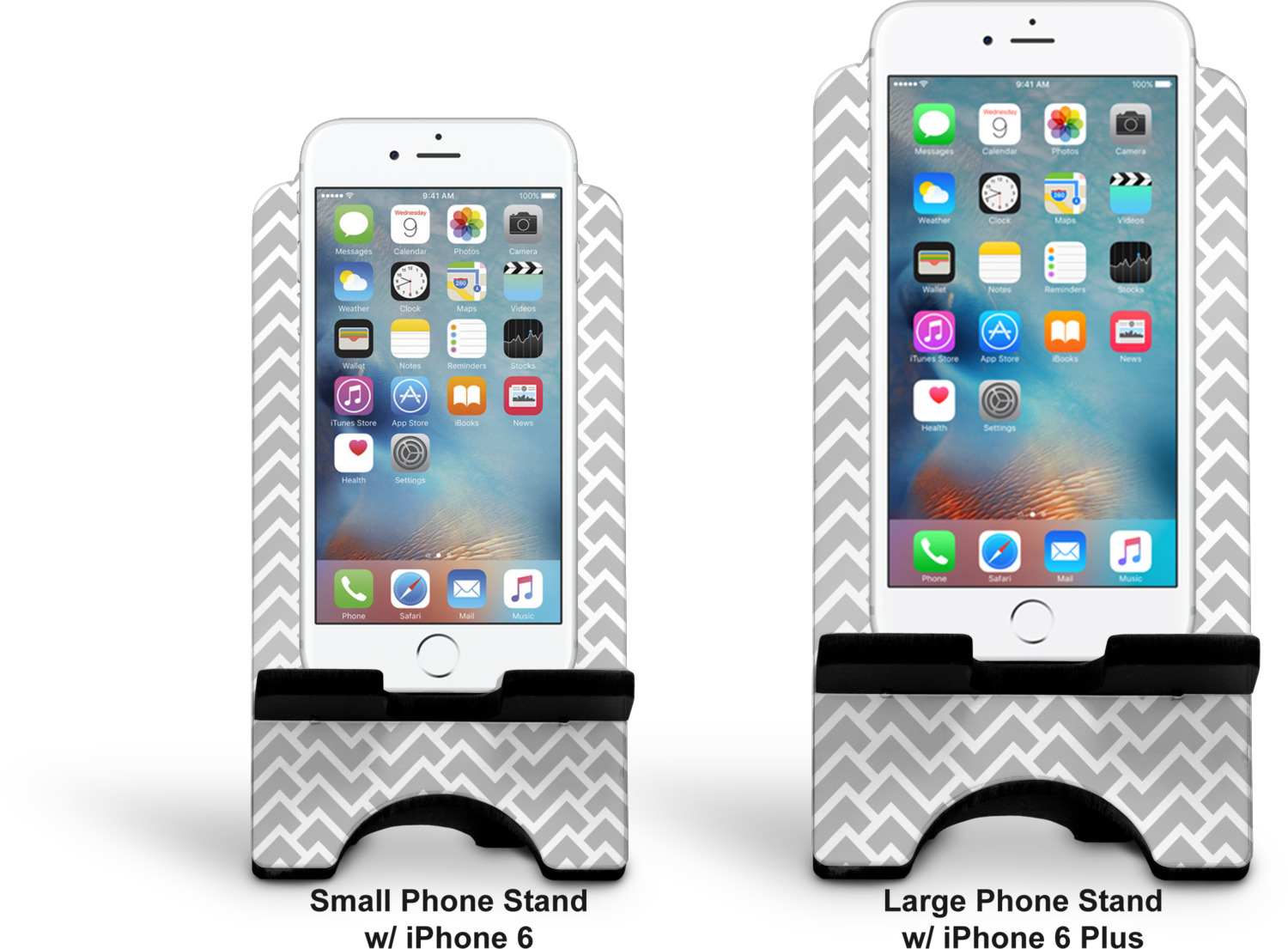 To meet your needs, we offer four variations of this IPhone stand. The backboard of the first version is shaped as a plain, yet sleek rectangle, and is available in two sizes. Our smaller size is approximately 4 by 3.25 by 7 inches, while the larger model is 4 by 3.77 by 8.5 inches. Alongside this model, we also provide you with a more decorative option. The upper part of our second version features a curved edge, for a classy, suave appearance. This phone holder is also sold in two sizes: a smaller version, which is 4 by 3.25 by 7 inches, and our larger model, which is 4 by 3.77 by 8.5 inches. Both models will support large phones, but the larger model is better if you wish to proudly display your personalized design.