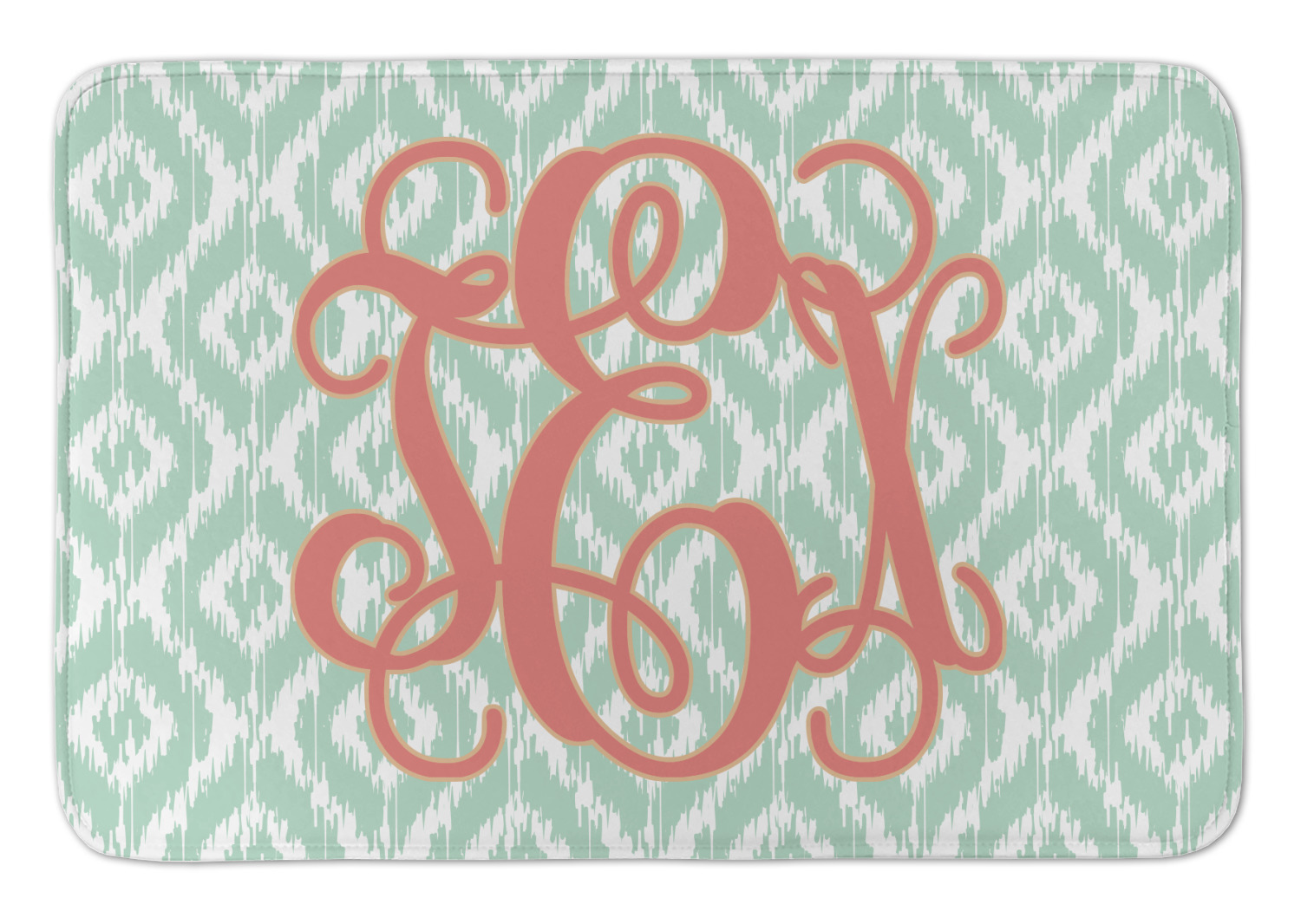 Are you a monogram-a-holic? Then, this design is perfect for you. With a subtle mint green ikat background, your monogram takes center stage in a bold coral. Let us indulge your obsession with this precious design!!