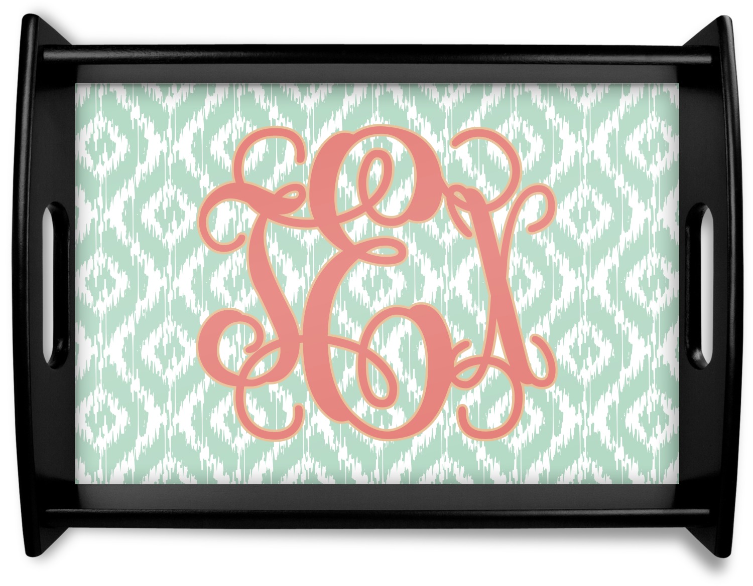 Are you a monogram-a-holic? Then, this design is perfect for you. With a subtle mint green ikat background, your monogram takes center stage in a bold coral. Let us indulge your obsession with this precious design!!