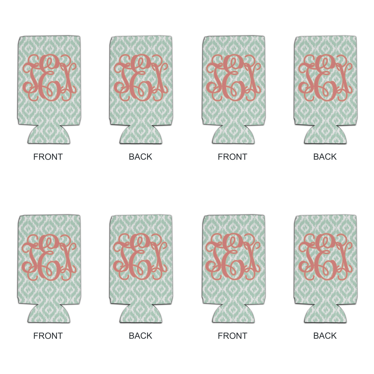 Are you a monogram-a-holic? Then, this design is perfect for you. With a subtle mint green ikat background, your monogram takes center stage in a bold coral. Let us indulge your obsession with this precious design!!