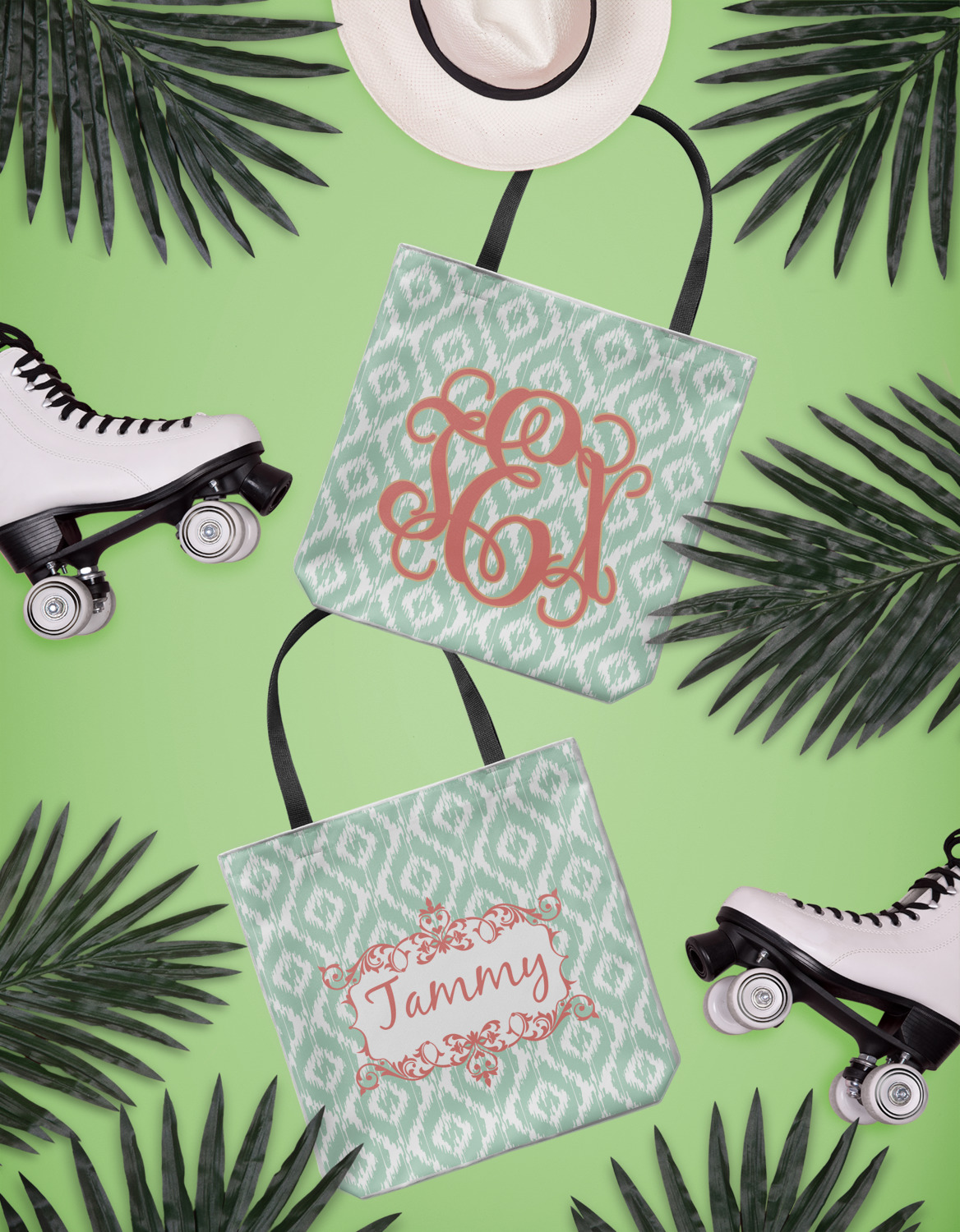 Are you a monogram-a-holic? Then, this design is perfect for you. With a subtle mint green ikat background, your monogram takes center stage in a bold coral. Let us indulge your obsession with this precious design!!