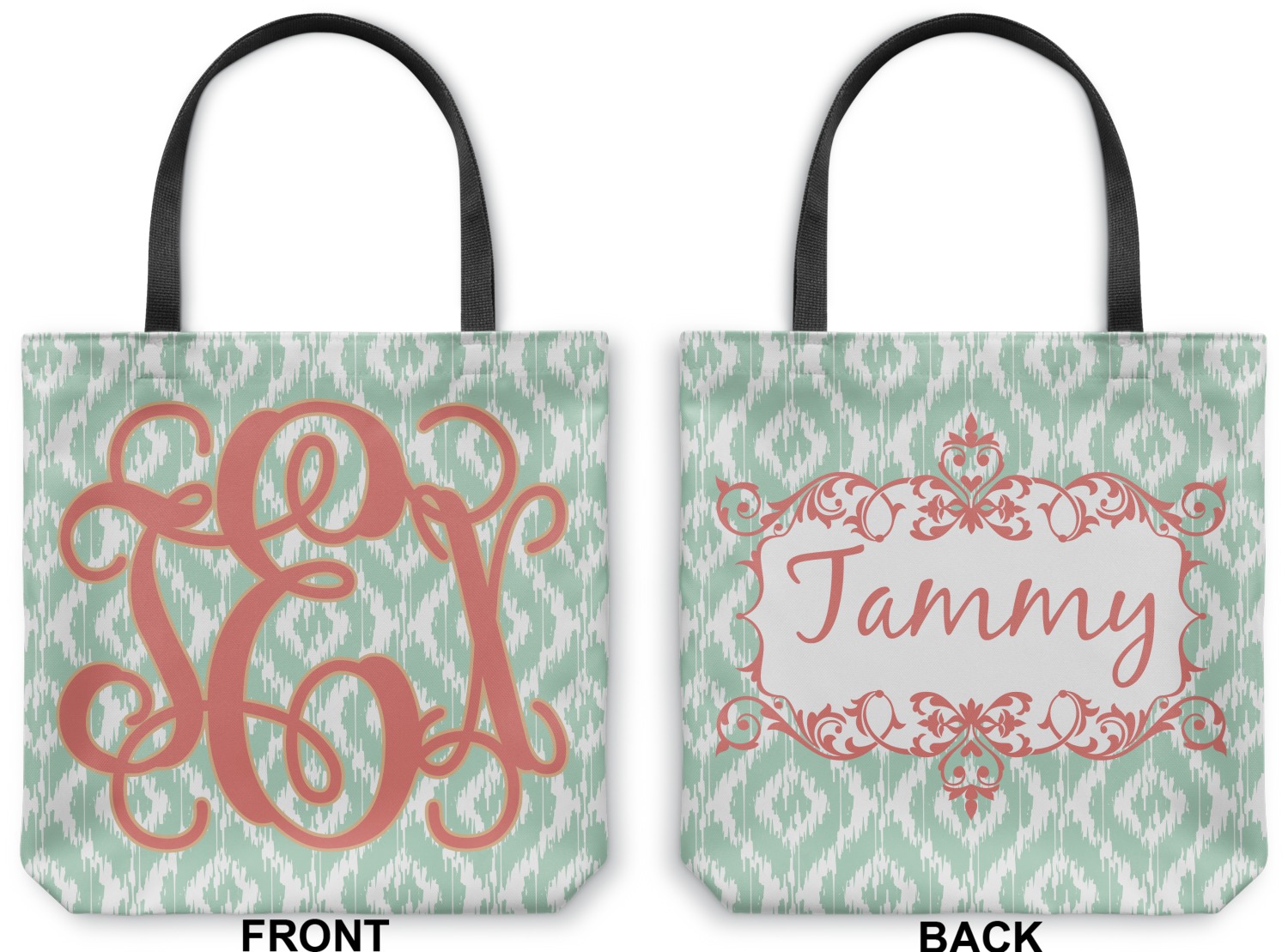 Are you a monogram-a-holic? Then, this design is perfect for you. With a subtle mint green ikat background, your monogram takes center stage in a bold coral. Let us indulge your obsession with this precious design!!