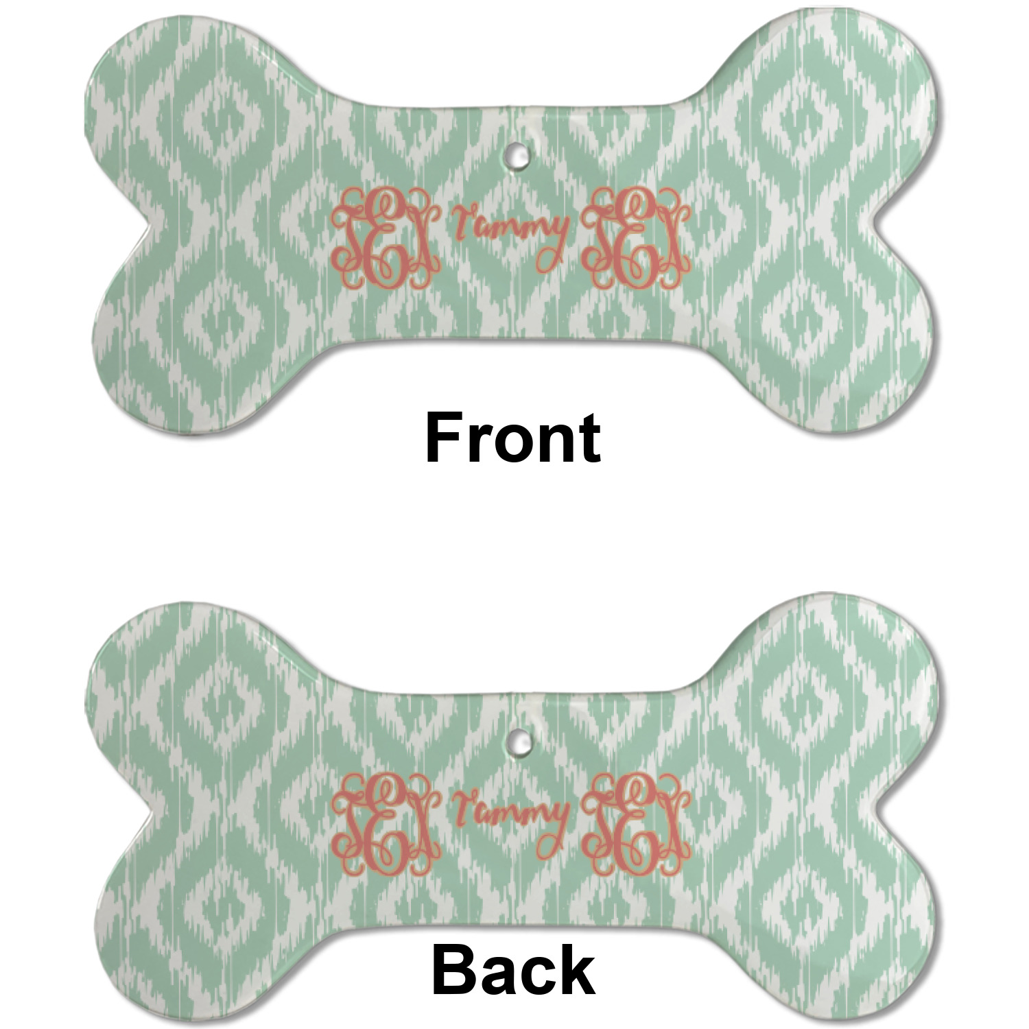 Are you a monogram-a-holic? Then, this design is perfect for you. With a subtle mint green ikat background, your monogram takes center stage in a bold coral. Let us indulge your obsession with this precious design!!