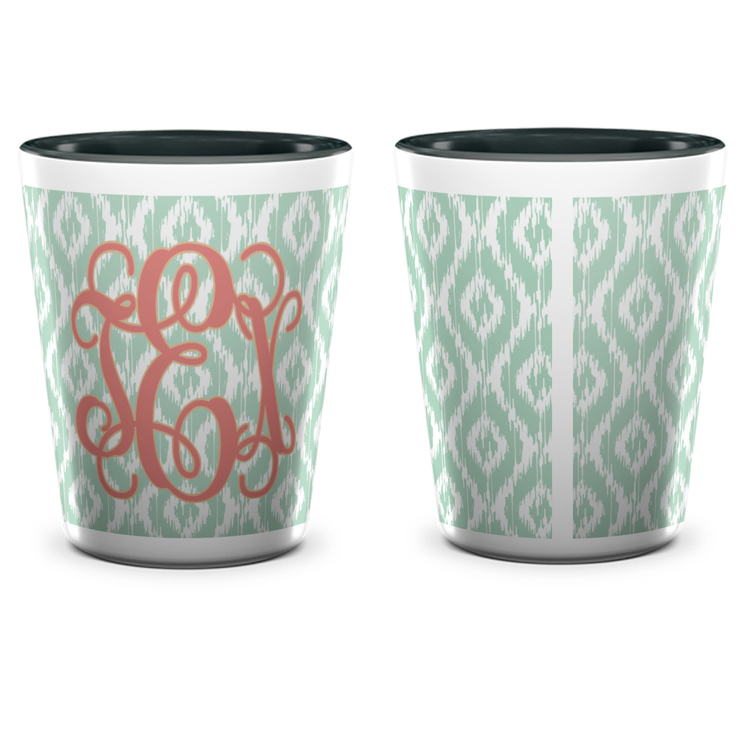 Are you a monogram-a-holic? Then, this design is perfect for you. With a subtle mint green ikat background, your monogram takes center stage in a bold coral. Let us indulge your obsession with this precious design!!